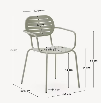 Brai it Garden chair with armrests, which impresses with the simplicity of form and solid performance. Made of galvanized turquoise steel, it is resistant to rust and corrosion, which ensures its durability in external conditions. The possibility of stacking makes the chair extremely practical and easy to store.