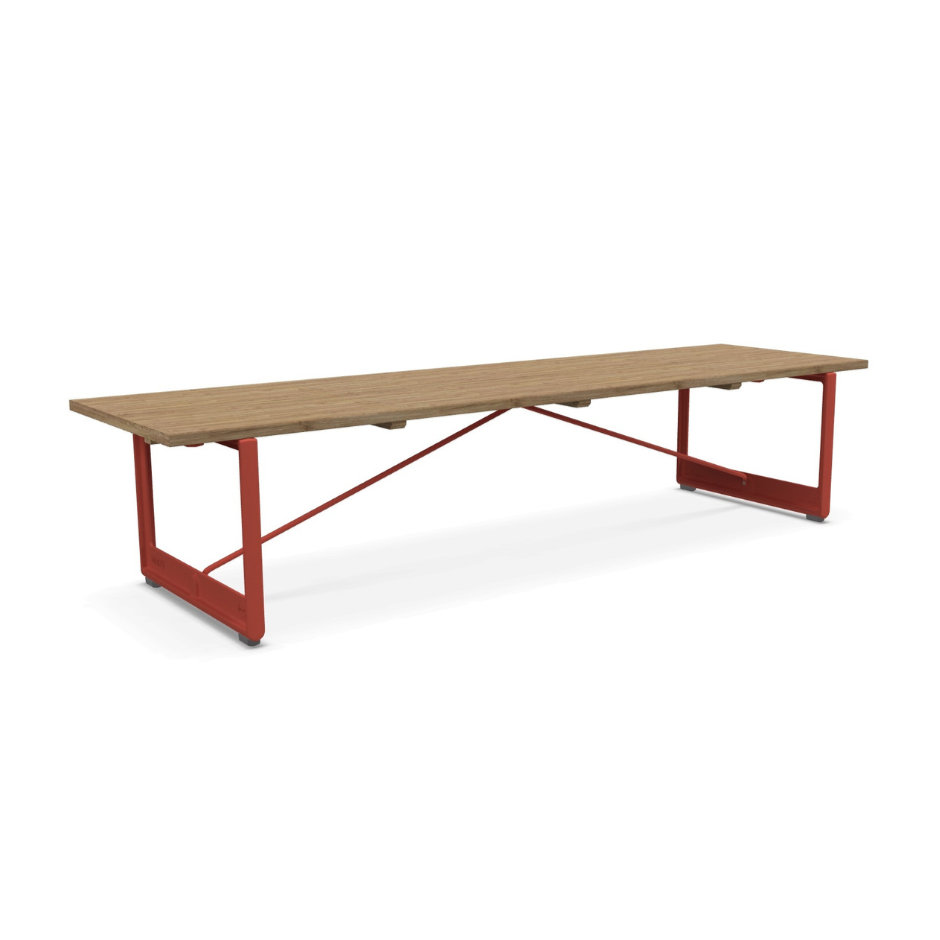 BRUT bench made of oak wood with a red base