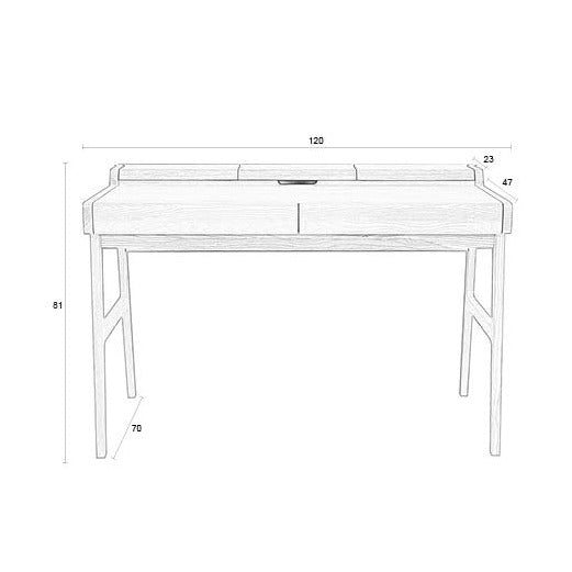 Desk Kaat is made of oak veneer and rubber wood with a natural finish. Kaat has a lot of built -in storage space, with three shelves at the top and two drawers inside. The middle shelf at the top has built -in holes for hiding and organizing cables.