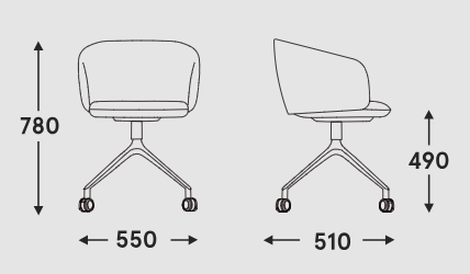 Swivel chair Grace with an aluminum base and wheels is a modern solution for offices, conference spaces and public places. An elegant, upholstered seat inspired by club chairs ensures comfort and aesthetics, and the cast aluminum base with wheels allows free mobility of the user, making it easier to move around the work space. The combination of a classic form with a modern finish gives Grace a unique, timeless character.