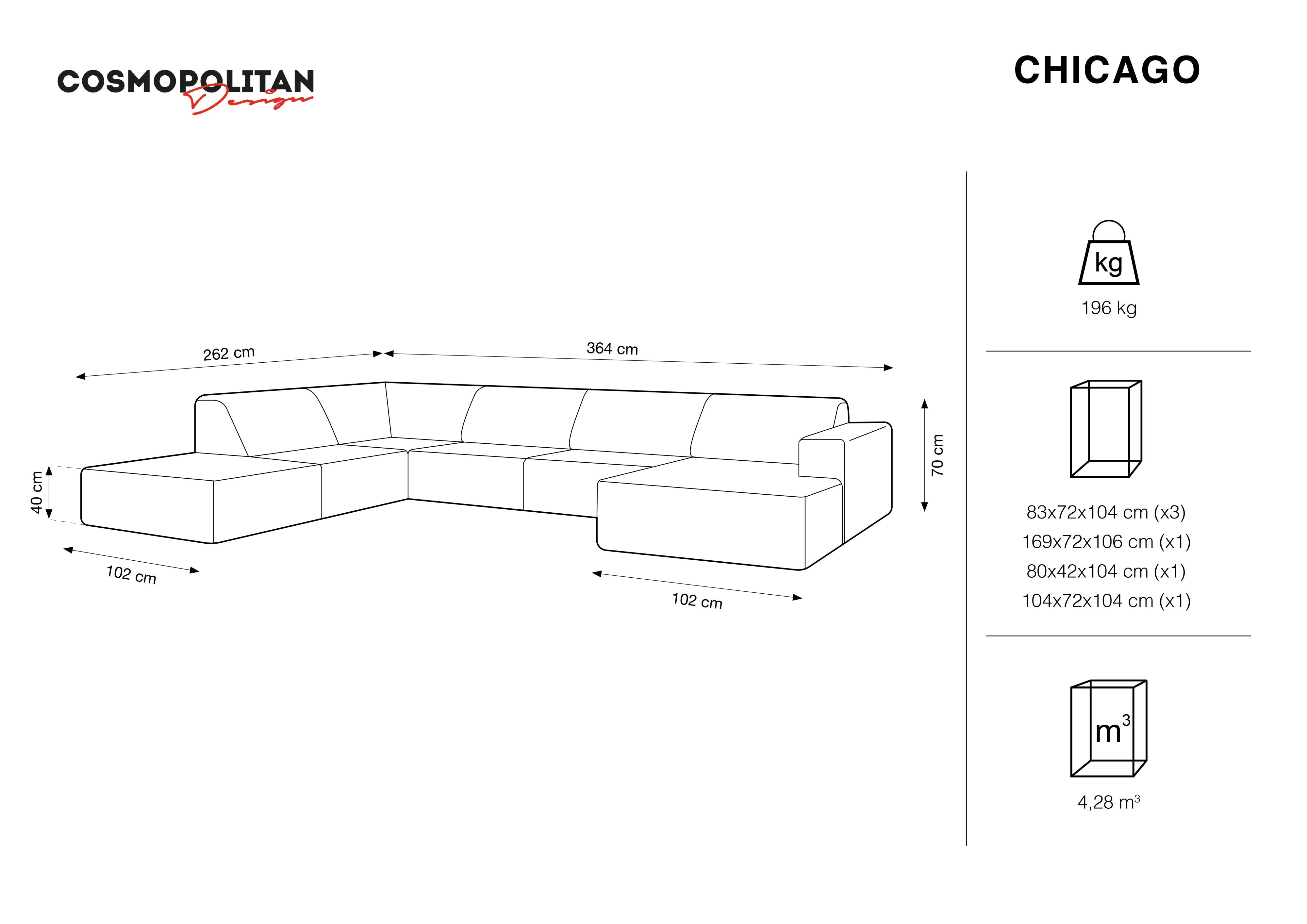 Narożnik w kształcie U lewostronny CHICAGO jasnoszary szenil Cosmopolitan Design    Eye on Design