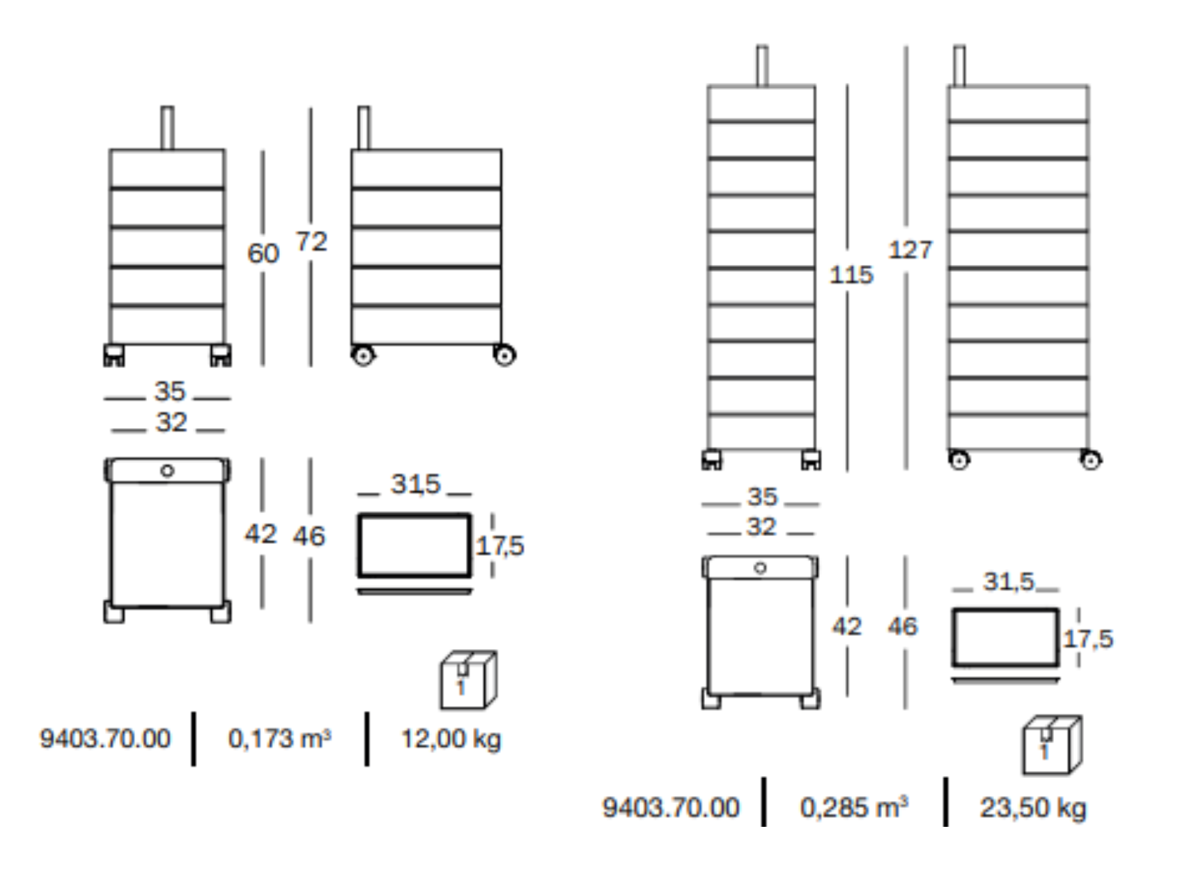 Cabinet It is available in two versions: Z 5 drawers with a compact dimensions of 72 x 42 x 32 cm and with 10 drawers with increased capacity, measuring 127 x 42 x 32 cm. Each model is equipped with wheels that provide full mobility and convenience of use. In addition, the cabinet contains a tray from ABS, which can be purchased as a separate element.