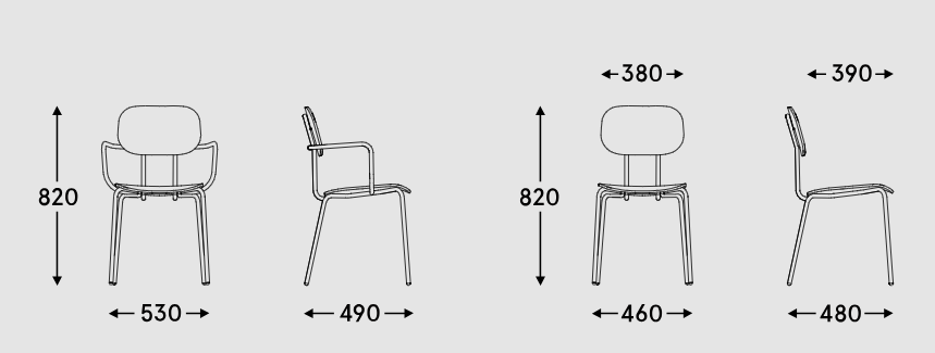 Plywood chair New School is a modern edition of a classic school chair, offering many configurations. In the four -legged version, with optional armrests, it will work in offices, canops, as well as in home spaces. The plywood seat is durable and easy to care, which makes them ideal for places with a high rotation of user.