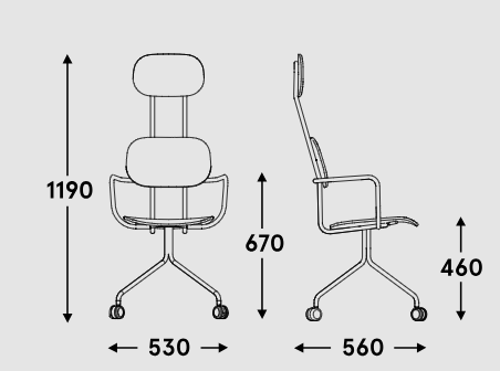 The headrest provides additional support for the whole back, which increases comfort during a long seating. The base with wheels allows you to easily move the chair, and thanks to a wide range of upholstery materials, including post -consumption recycling, chair can be adapted to individual preferences. Ideally suited to various office and educational zones, as well as in public and private spaces.