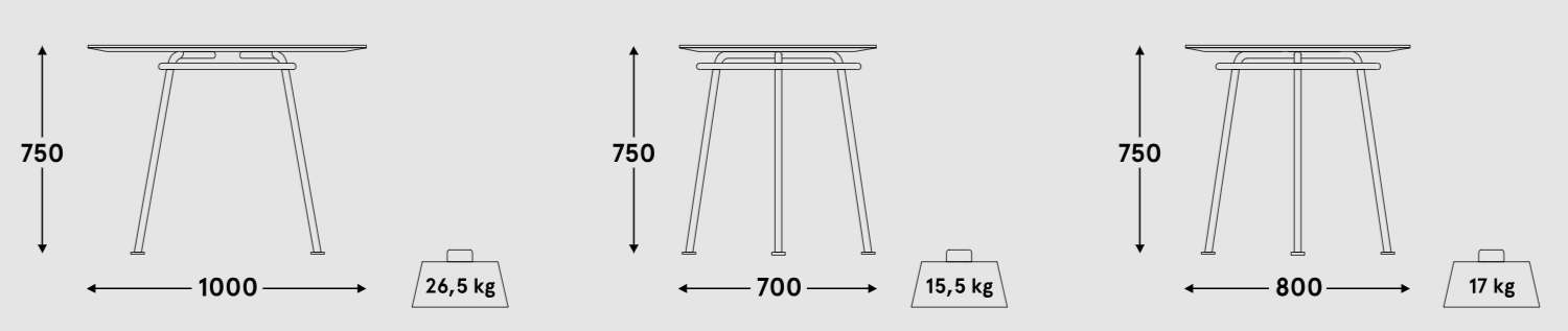 The 750 mm high top is made of MDF, covered with easy to care linoleum. The varnished edges are matched to the frame, which strengthens the modern appearance of the furniture. The table is available in a wide range of intense colors, perfectly fitting into office, hotel and gastronomic spaces.