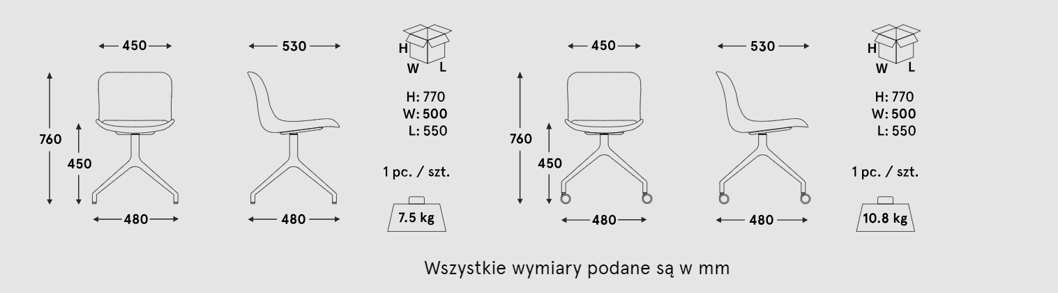 Swivel chair Baltic 2 classic polished aluminum is a modern, stylish chair ideal for offices, conference rooms and other public spaces. Its seat made of durable plastic is comfortable, and the base of polished aluminum adds elegance and modern character. The rotating construction on optional wheels allows freedom of movement and dynamic attitude during operation, which promotes comfort even with long -term use.