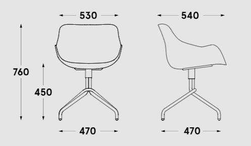 A durable plastic seat is easy to care for, and a solid metal base on wheels increases mobility. Integrated armrests increase comfort, and all materials are environmentally friendly, recyclable.