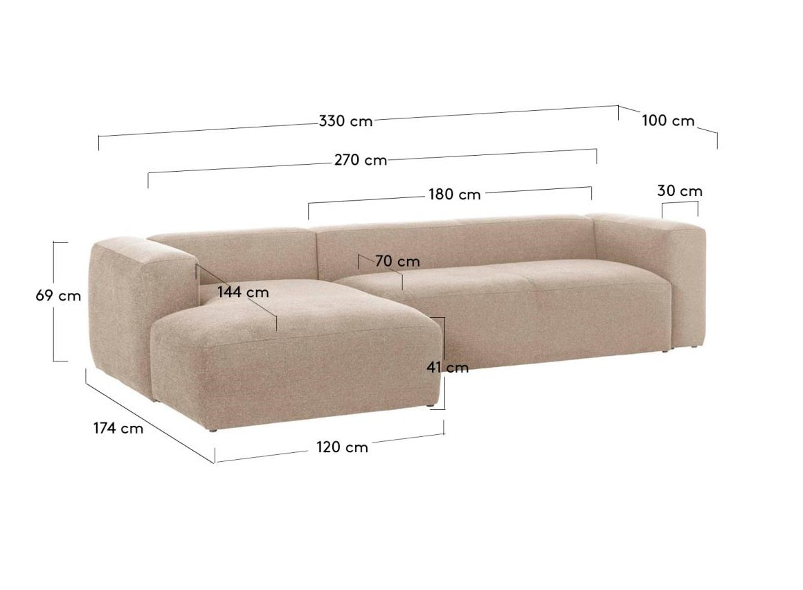 Narożnik 4-osobowy lewostronny BLOK beżowy szenil La Forma    Eye on Design