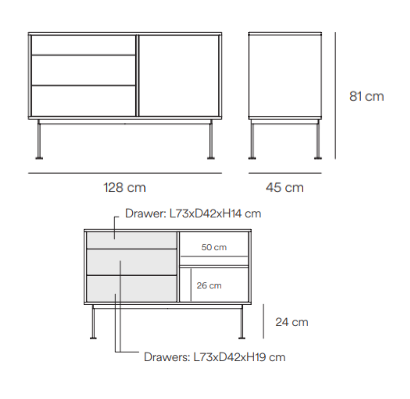 The minimalist approach can also be seen in the construction Cabinet to the living room Yoko. Thanks to the use of capacious drawers, as well as cabinets with several shelves, you can better use the space. Minimalistic Cabinet Yoko is great in almost every room.