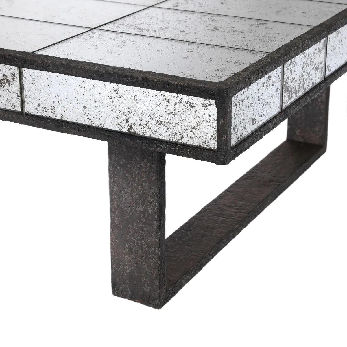 A solid black CERVILLA coffee table is a certain and durable support for a unique top. The top made of faded mirror glass is like an undisturbed story that brings a note of delicacy and nostalgia with it. The faded finish gives it character and makes every look back on a journey to other times.