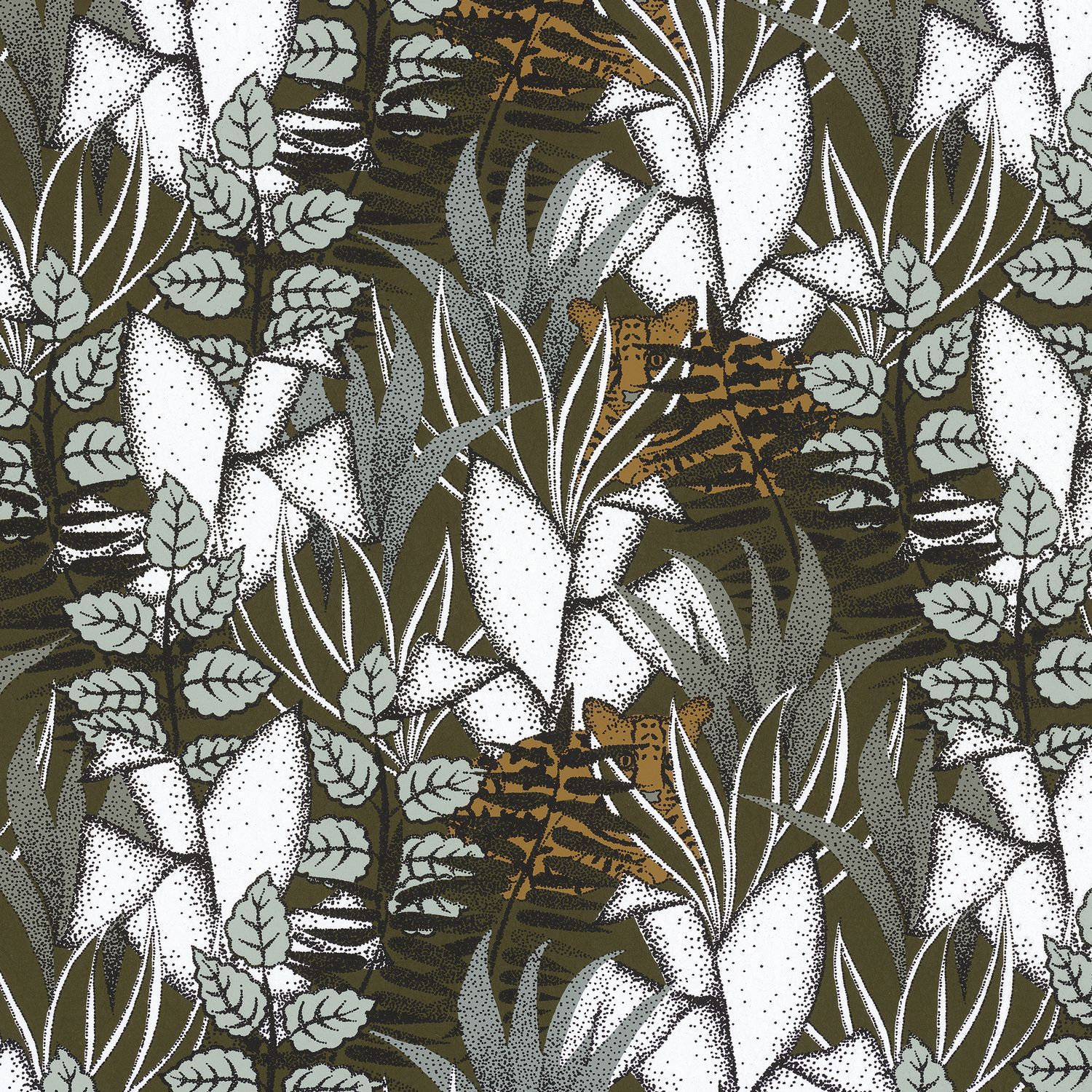 Structural wallpaper with jungle plant motif TIGRIS - KAKI khaki