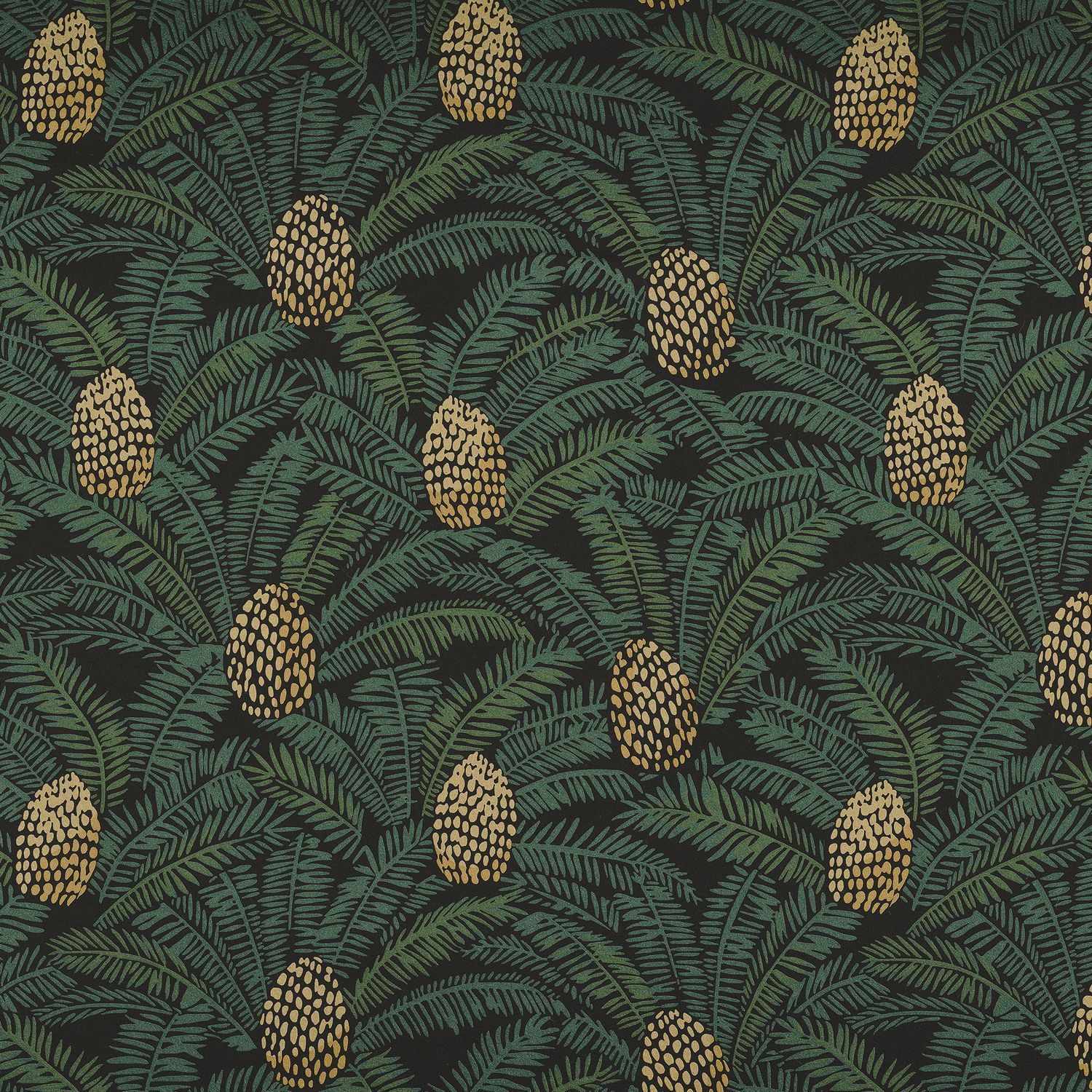 Structural wallpaper with a botanical motif PALMETA - NOIR/DORE black with gold