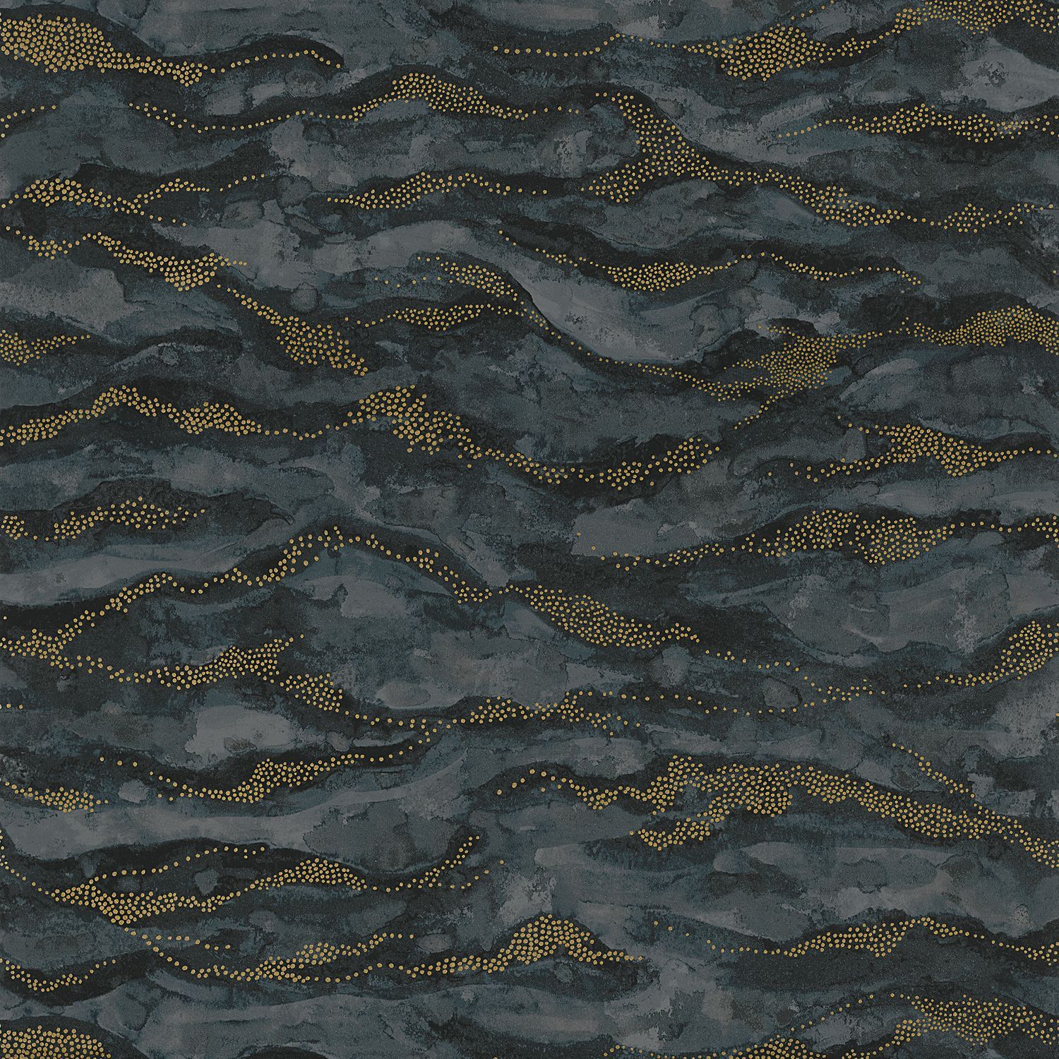Sohar Abstract Wave Pattern Wallpaper - Marine/Gold Navy with Gold
