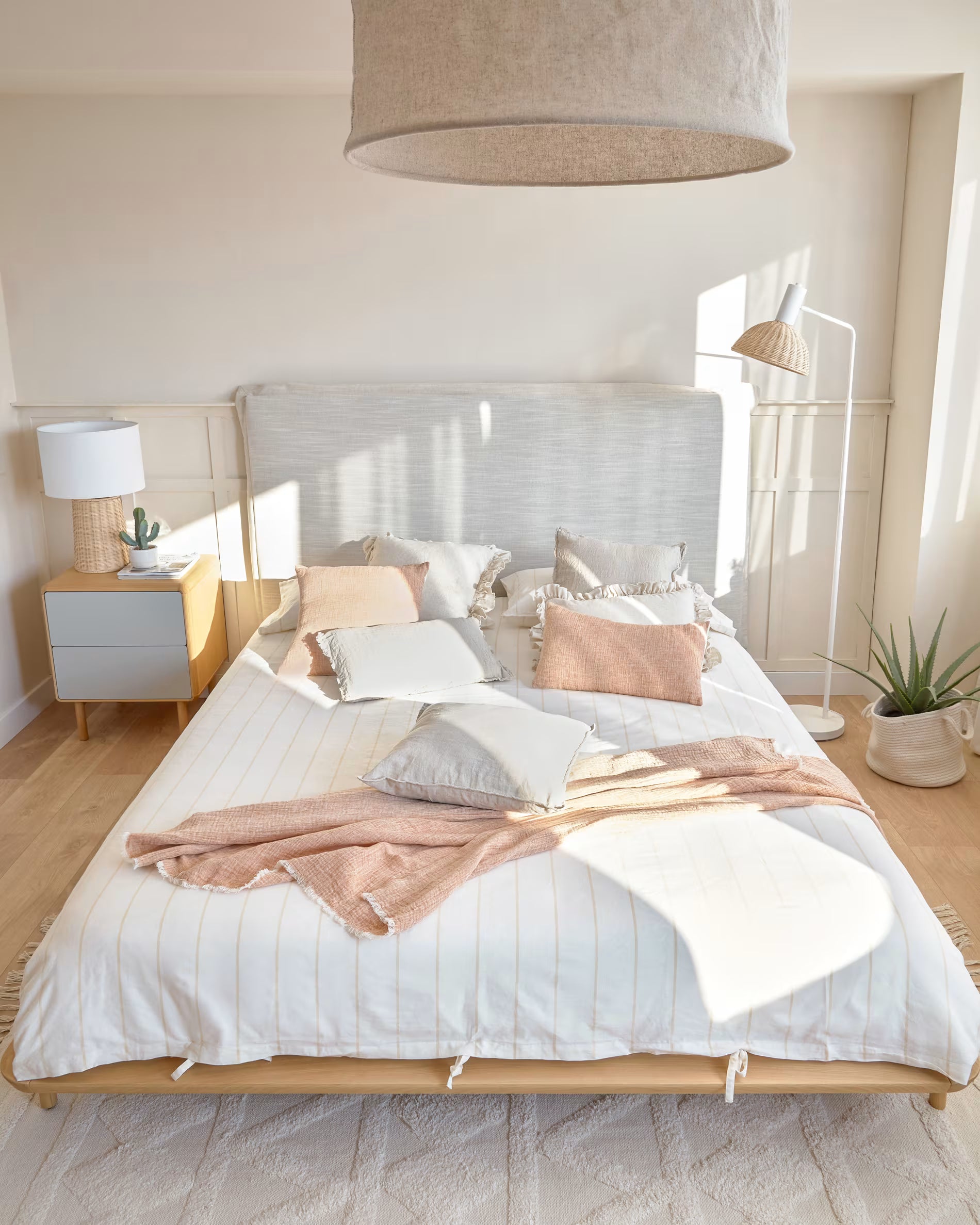 ANIELLE Nightstand Light Gray with Wood