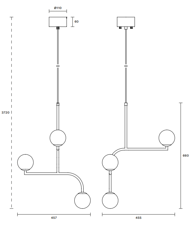 Hanging lamp Mobil is an impressive design inspired by New York architecture and industrial aesthetics. Its structure evokes the black metal railings of balconies and the lanterns from the Brooklyn Bridge. Mobil stands out with its asymmetrical composition of spherical shades connected in a graphic, rhythmic structure – reminiscent of a modern sculptural form suspended in space.