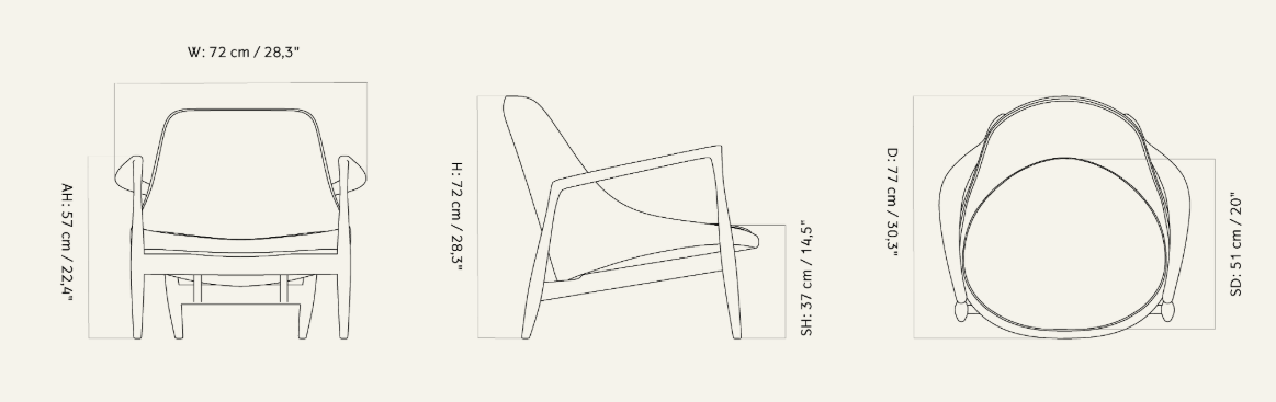 Chair Elizabeth is a refined example of Danish modernist design, combining elegance, comfort, and a timeless form. Designed with an excellent sense of proportion, it features a soft, flowing silhouette and distinctive, sculpted armrests that give it lightness and a majestic character. The inspiration for its name comes from Queen Elizabeth II – the model earned the nickname Elizabeth Chair after the monarch and Prince Philip purchased two pieces during an official visit to Denmark in 1958.