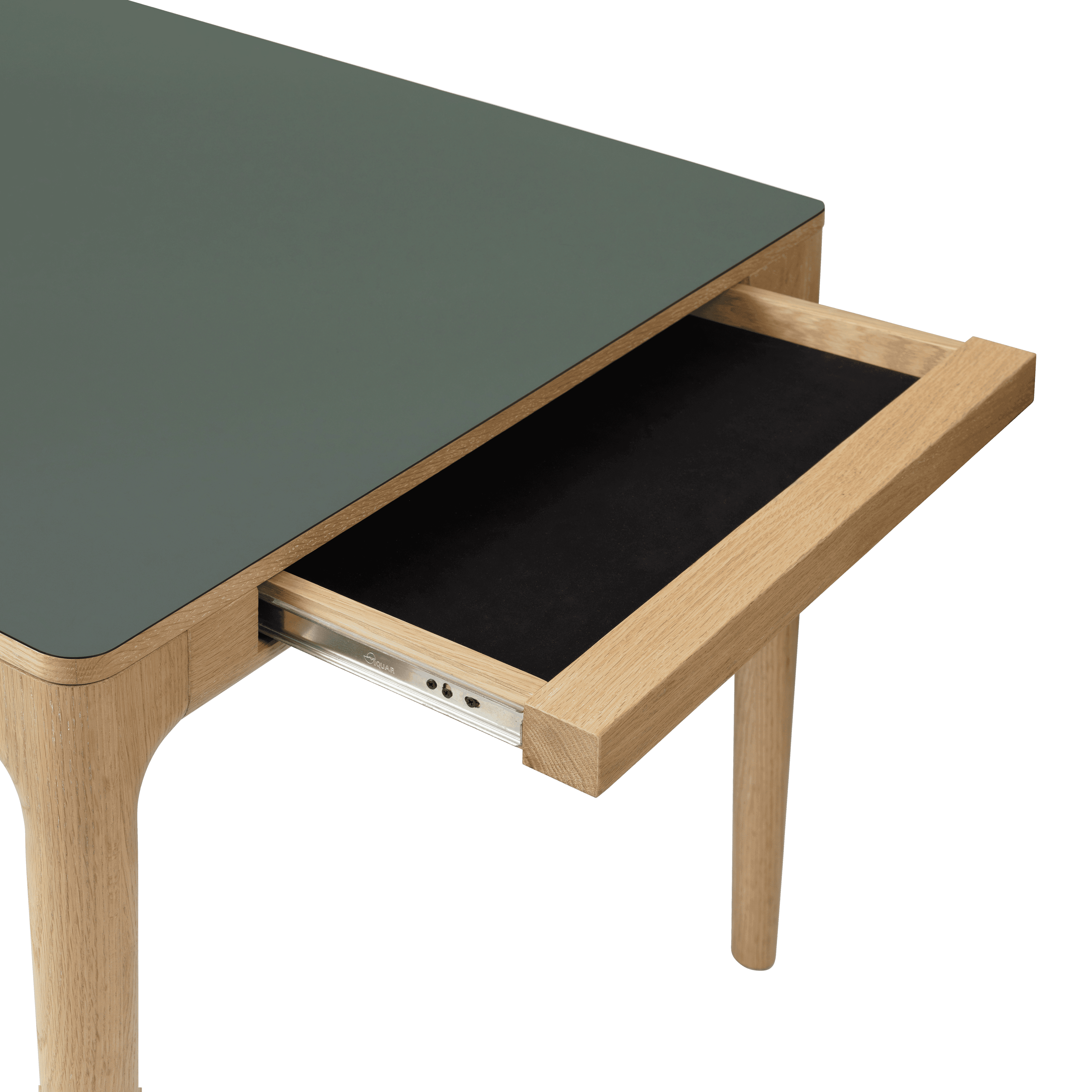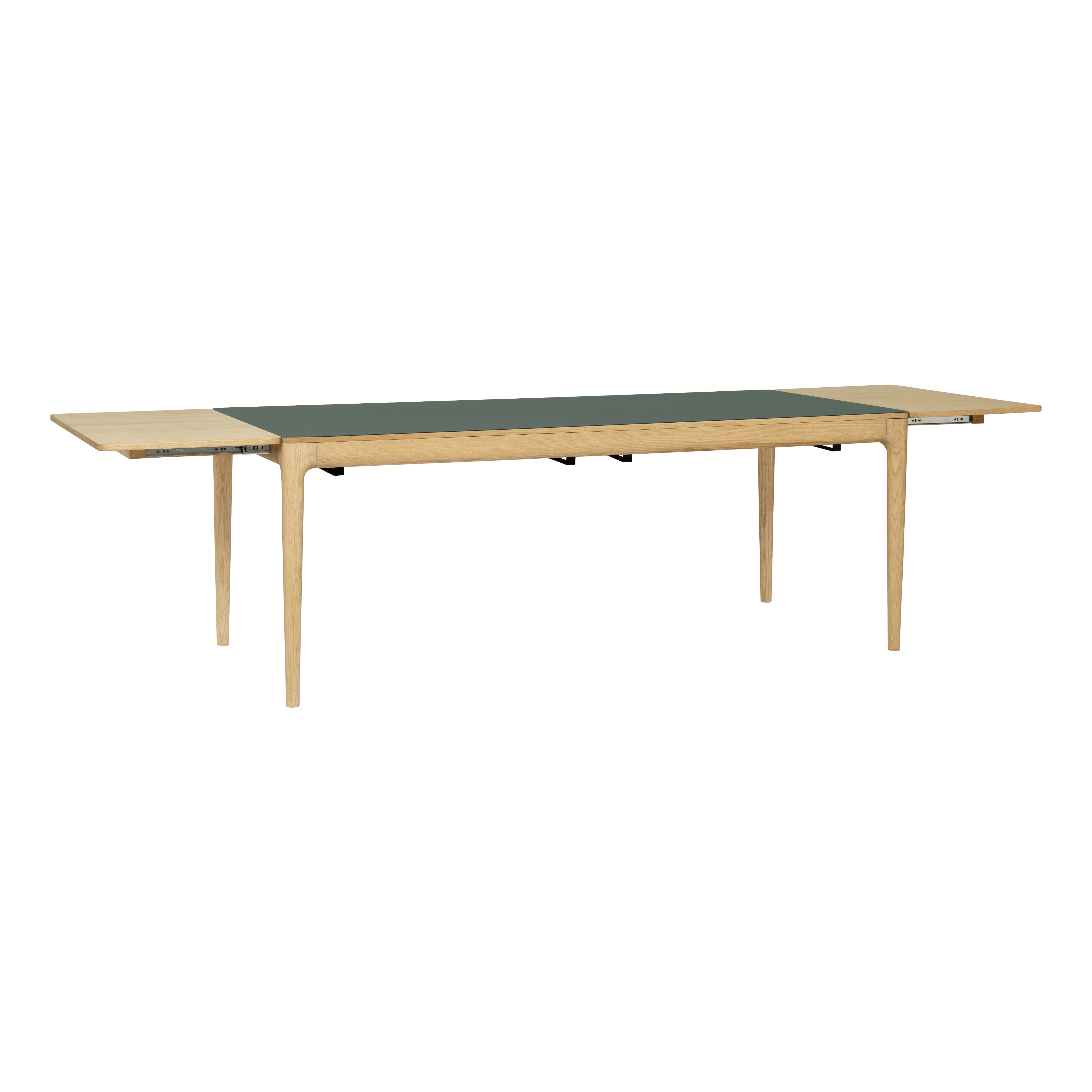 Table It can conveniently accommodate up to 12 people, available in three colors: natural oak, dark oak and black oak. The oak version is also available with Fenix® nanolaminate in shades of clouds gray, moss green and obsidian black, emphasizing the natural beauty of wood.
