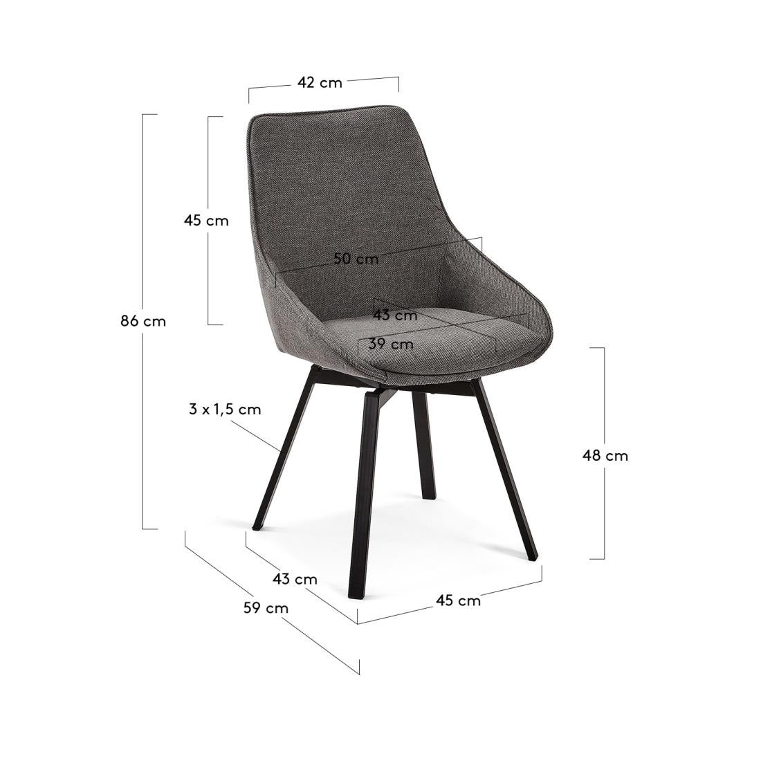 Steel legs finished in black are not only a solid structure, but also an expression of the industrial character of the chair. The contrast between soft upholstery and metal legs gives it a unique character that catches the eye and gives the interior a modern expression. The internal structure made of low -emission formaldehyde E0 is proof of an obligation to protect the environment. Chair Jenna not only looks beautiful, but also cares for the purity of our planet, which makes it a conscious choice. Availability in different colors is the ability to adapt the chair to individual preferences and the nature of the room. Dark grayE Rotary chair Jenna mustard is not only a functional element, but also an expression of style and modernity in any interior.