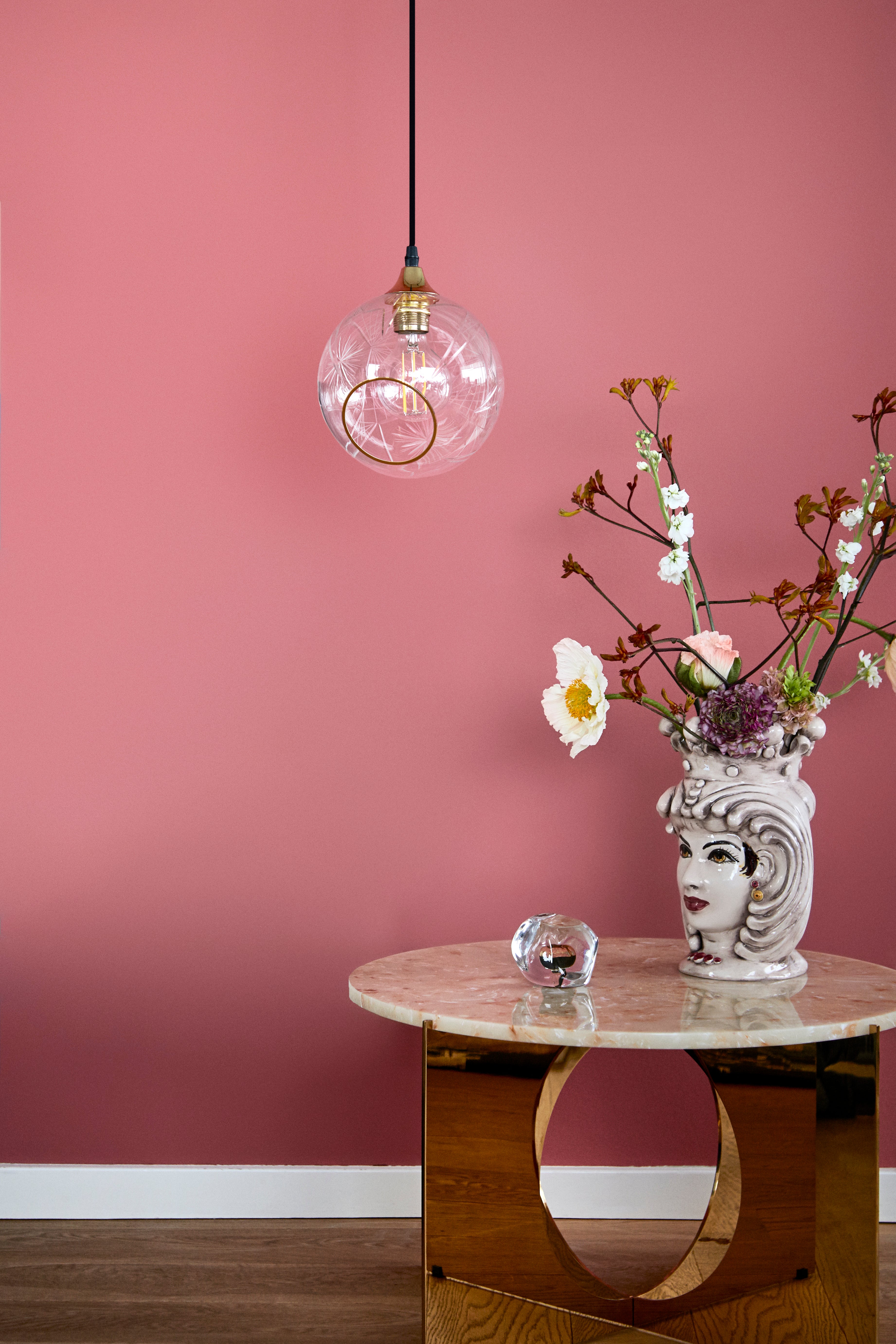 Lampa wisząca Ballroom Diamond to połączenie klasycznej formy i eleganckiego wykończenia, które przyciąga wzrok i dodaje wnętrzu luksusowego charakteru. Szklany klosz wykonany metodą ręcznego dmuchania zachwyca precyzyjnym szlifem oraz złotym wykończeniem krawędzi, podkreślając wyjątkowość każdego egzemplarza. Lampa wisząca doskonale sprawdzi się nad stołem w jadalni, w salonie czy w eleganckim holu, tworząc nastrojowe oświetlenie i efektowną dekorację w jednym.