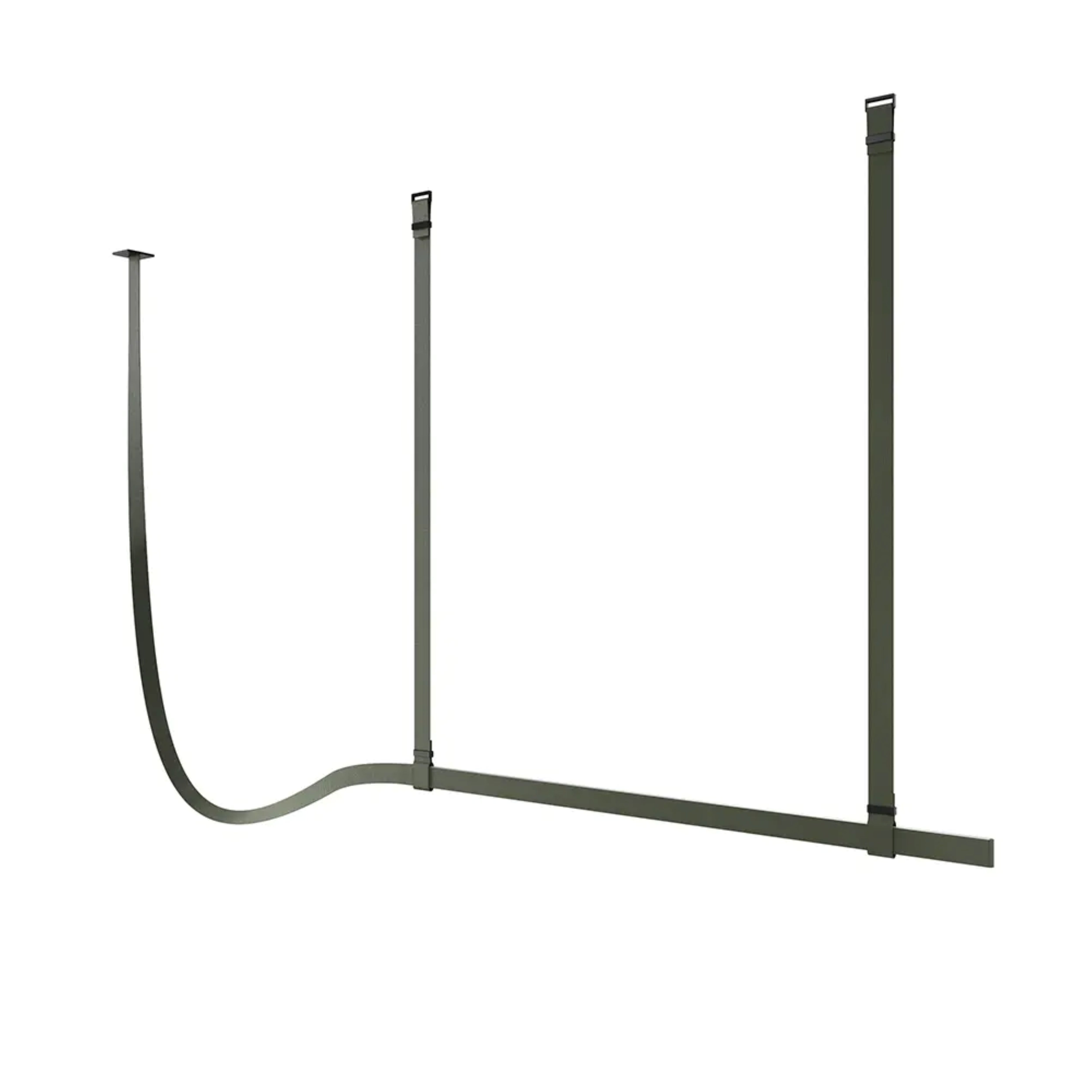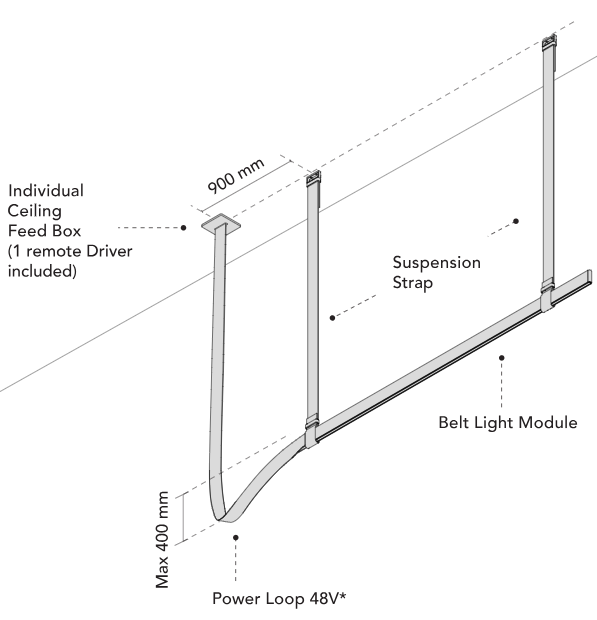 The lamp is mounted using straps threaded through metal clamps that serve as ceiling hooks. The adjustable length of the straps allows you to adapt the composition to various spatial arrangements. The power supply and control system are hidden within the straps, ensuring a clean form and maximum aesthetics. Each light source can be controlled independently thanks to the built-in CASAMBI system, managed through a dedicated app. Belt is lighting that impresses with both its form and functionality.