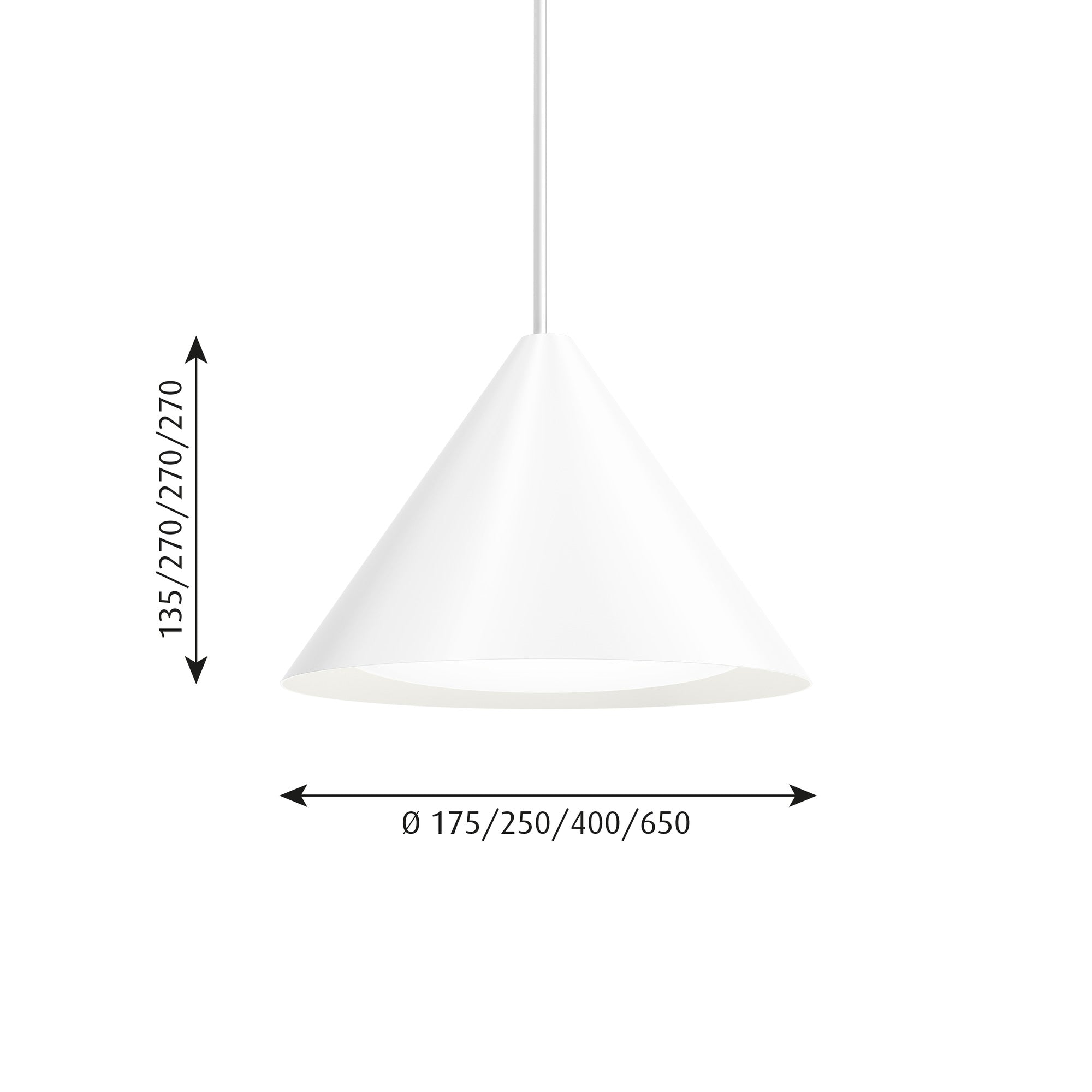 Lampa wisząca Keglen to efekt współpracy studia BIG Ideas z Louis Poulsen, w której połączono minimalistyczną formę z dopracowaną funkcją oświetlenia. Charakterystyczny stożkowy klosz z wbudowanym, zakrzywionym dyfuzorem zapewnia miękkie, równomierne i nieoślepiające światło skierowane w dół. Dodatkowo delikatna szczelina u góry klosza emituje subtelną poświatę ku górze, tworząc nastrojowy efekt świetlny. Lampa wisząca doskonale sprawdzi się zarówno nad stołem w jadalni, w salonie, jak i w przestrzeniach komercyjnych, gdzie liczy się zarówno funkcjonalność, jak i estetyka.