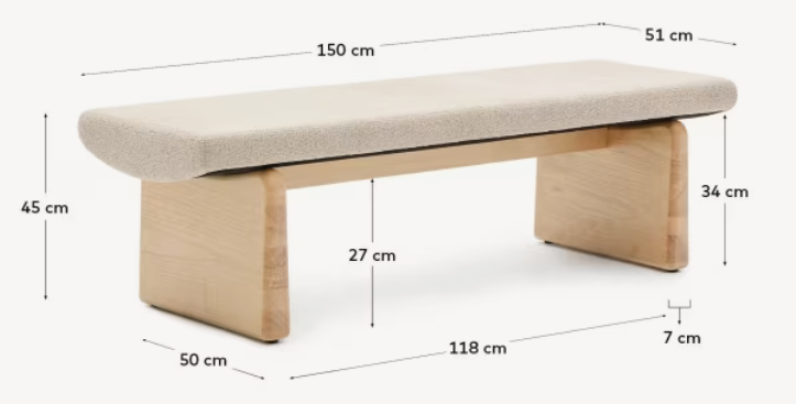 TOPAZ bench in beige chenille with an ash base