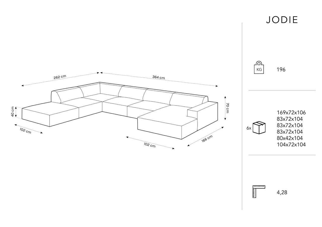 Jodie panoramic sofa is very convenient thanks to its large size, which allows you to sit on it even seven people. In addition, it has soft, comfortable back pads and seats that provide comfort during use.