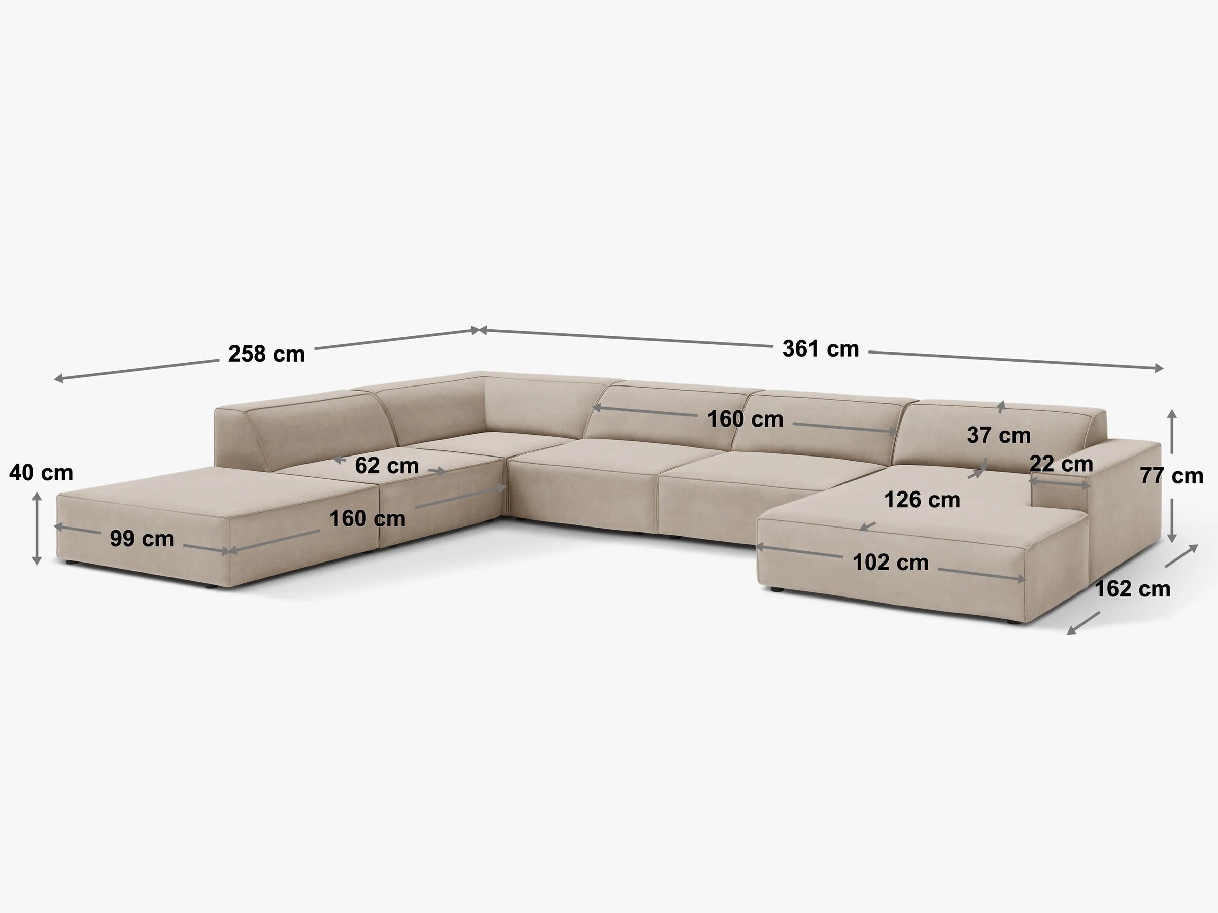 Jodie panoramic sofa is very comfortable thanks to its large size, which allows seating for up to seven people. Additionally, it features soft, comfortable back and seat cushions that provide comfort during use.