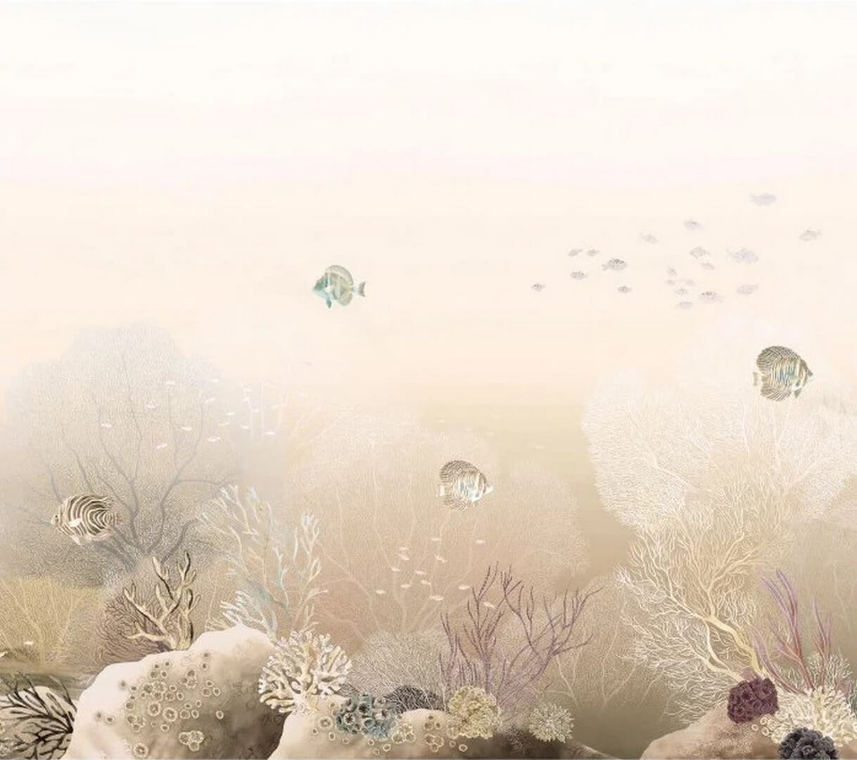 Mural with a marine motif POLYNESIE - GRÈGE beige