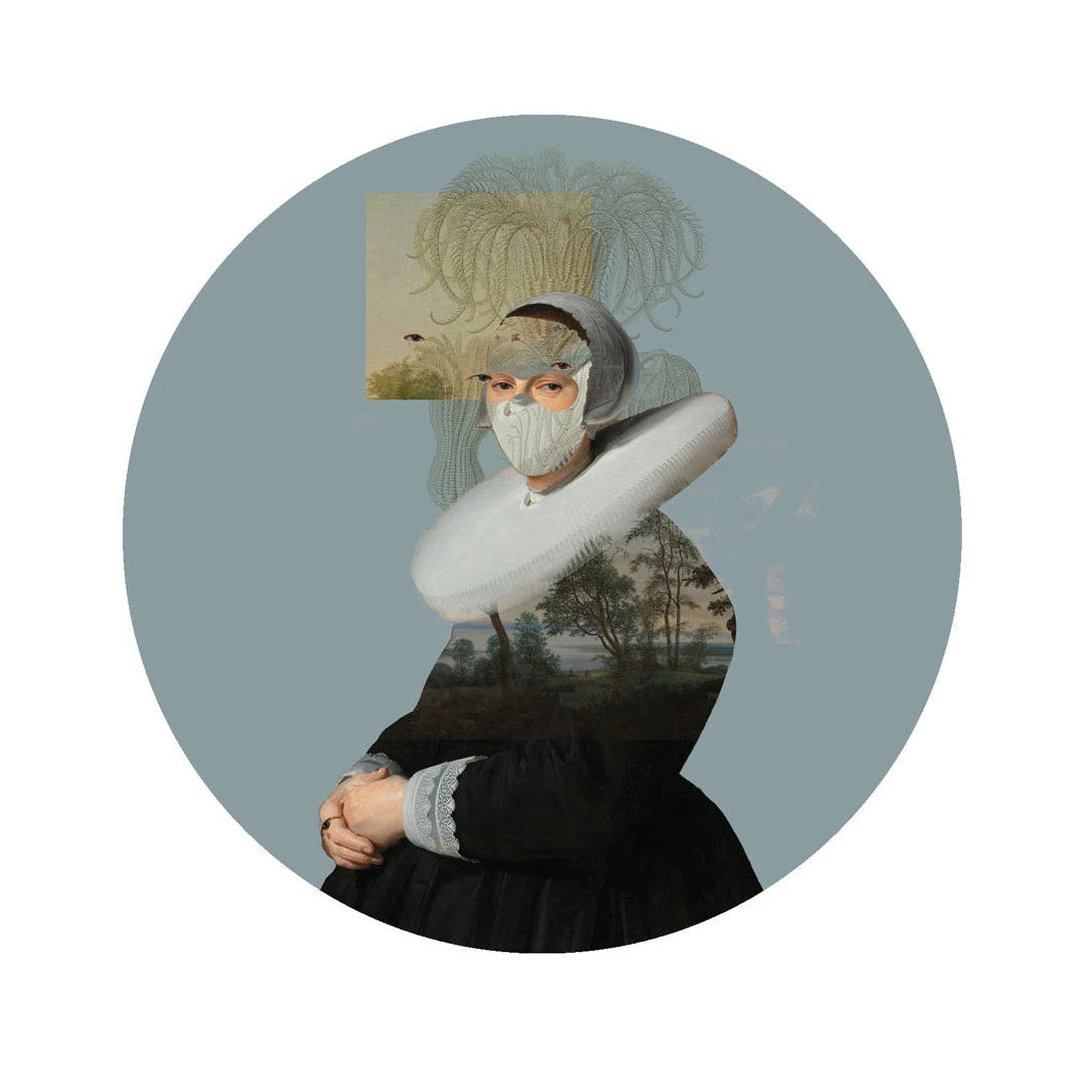 Mural Dots Landscape Muse is a round wall decoration that artistically combines a feminine portrait with a classic landscape and delicate botanical motifs. The muted shades of blue give the composition a slightly romantic, nostalgic character while maintaining elegance and a gentle expression. It’s a mural that brings peace and a balanced, painterly atmosphere into the interior.