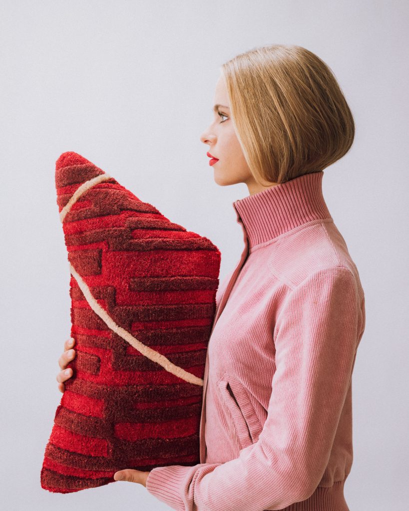 Cushion Maya stands out with its soft, flowing shape and harmonious color combination. Its pattern and design are crafted to attract attention and bring an artistic touch to the interior — the cushion serves as a decorative point that combines comfort and aesthetics.