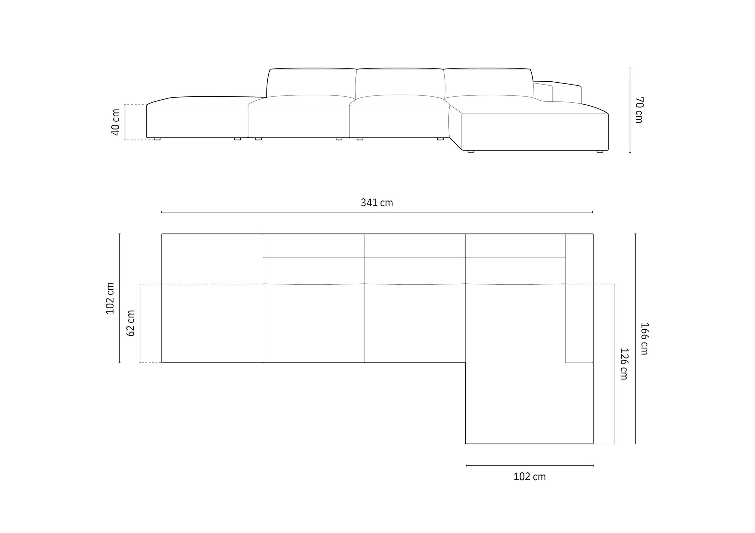 Narożnik aksamitny prawostronny 5-osobowy JODIE jasnobeżowy Micadoni    Eye on Design