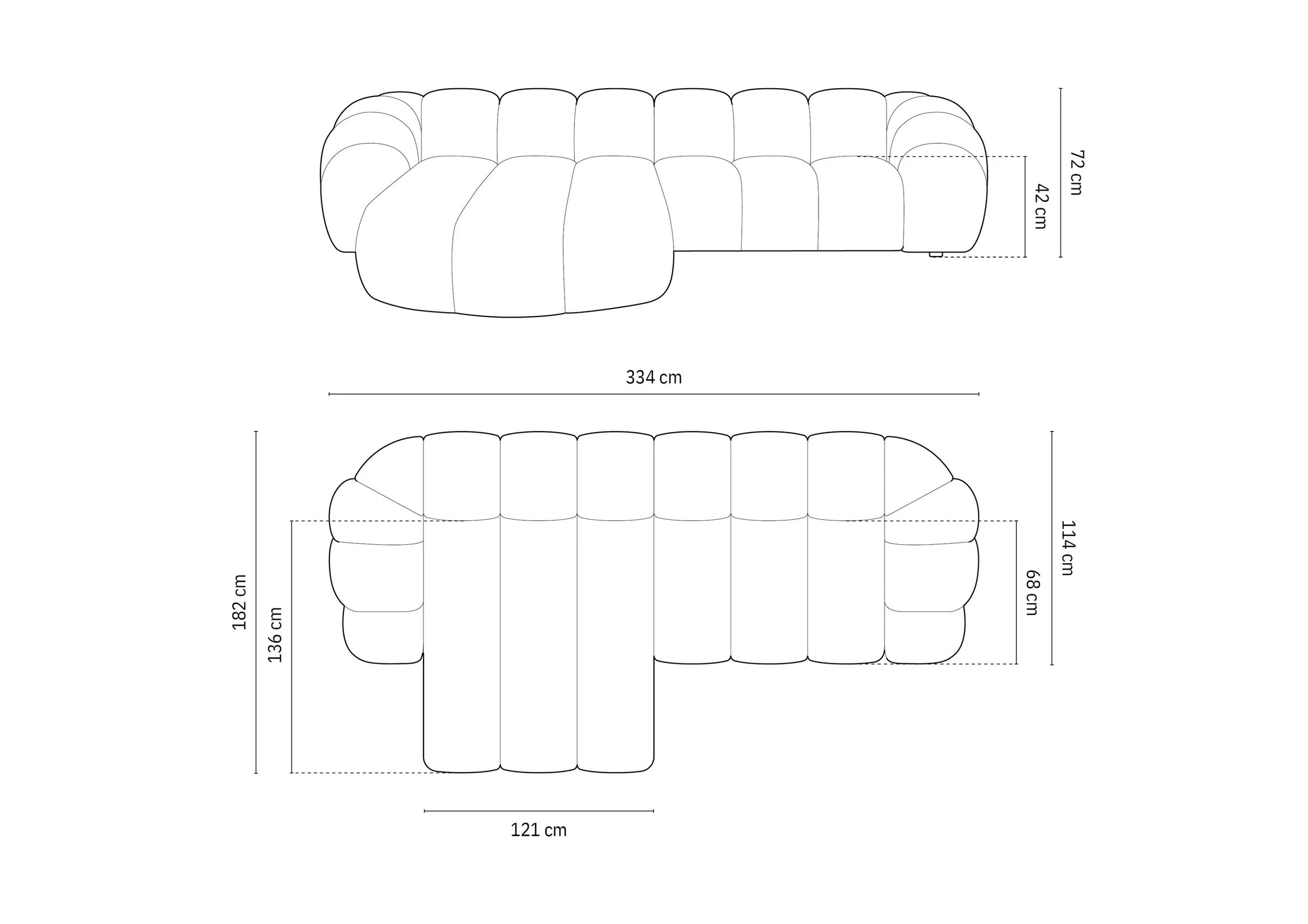 Velvet Left Corner Sofa, "Diana", 4 Seats, Green, 334x182x72 Made in Europe