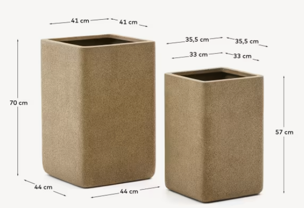 Set of high pots of mustard polycement minoa