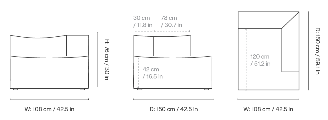 Chaise longue for the modular sofa is made from innovative microcellular foam, which provides exceptional durability and comfort. Thanks to the removable cover, keeping the chair clean is incredibly easy. Additionally, the solid construction made from FSC™ Mix-certified wood ensures eco-friendly production and product stability for many years to come.