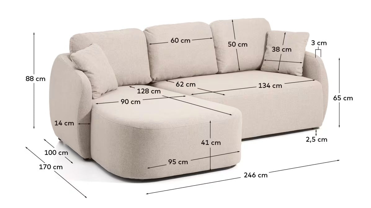 Left-sided 3-seater sofa bed LAIRA beige