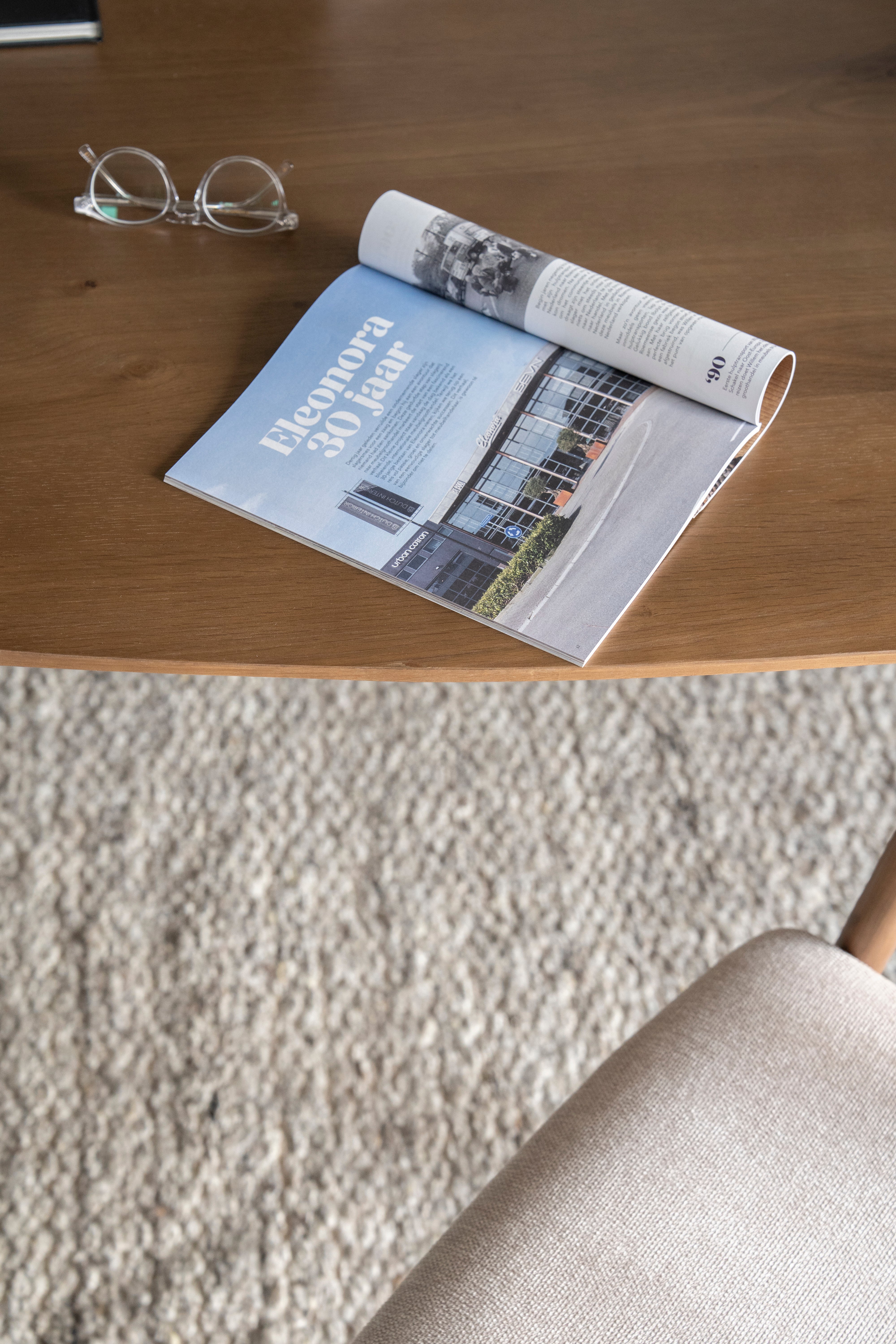 Elijah Table is a proposal for those who appreciate minimalist design, natural materials, and a light form. Made from veneer and solid oak, this dining table impresses with its oval top, which not only looks incredibly elegant but also works perfectly in spaces of various sizes. Its slender legs add a touch of subtlety, allowing the dining table to create a harmonious, modern composition in the interior. The availability of two colors – natural and brown – allows for perfect matching to the room's style.