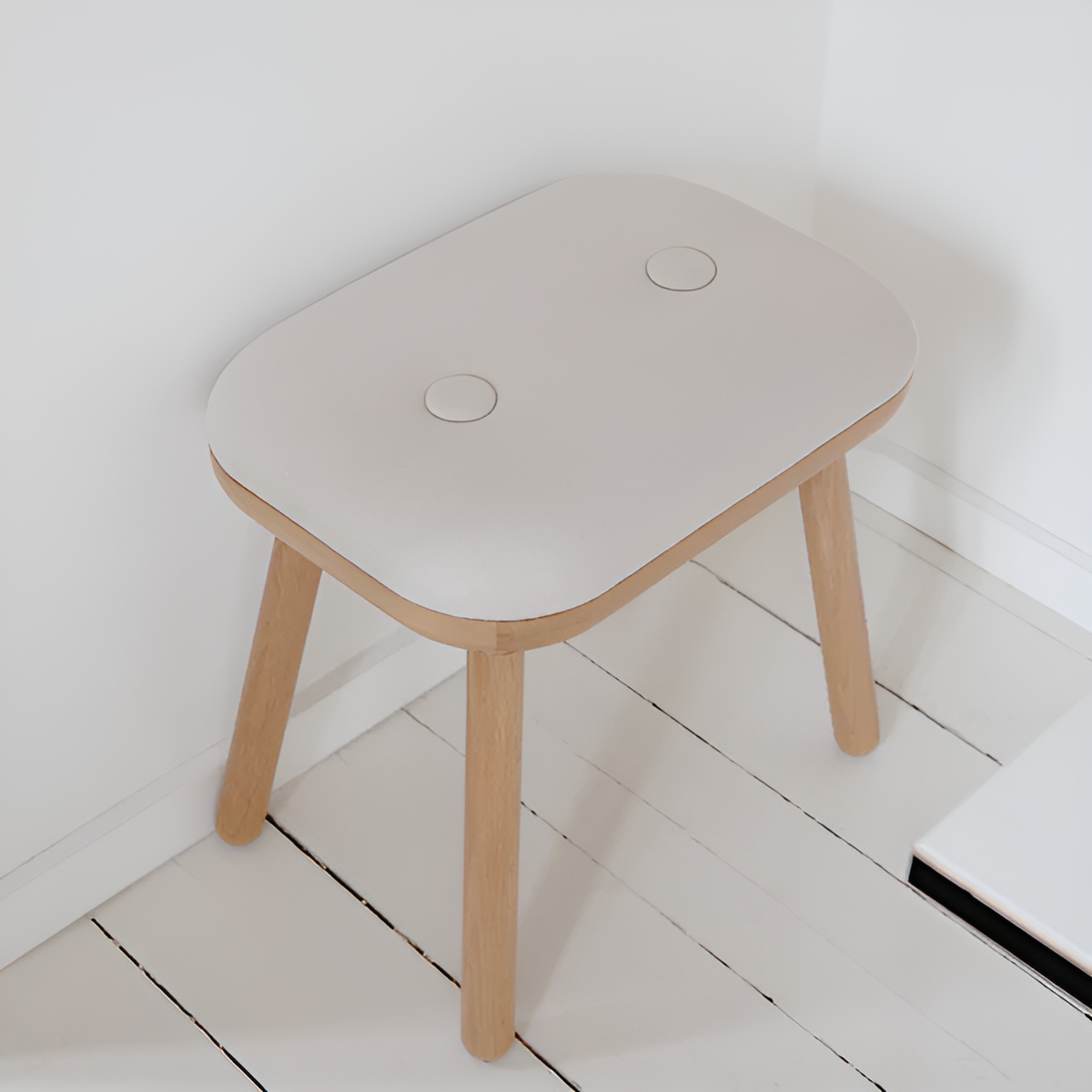 Paff is a multifunctional stool that easily adapts to different spaces and the needs of its inhabitants. Its versatile nature makes it suitable for a children's room, kitchen, hallway, or living room – anywhere a practical yet aesthetic addition is needed. The natural presence of wood and its compact form make it a calm and harmonious accent in any interior.