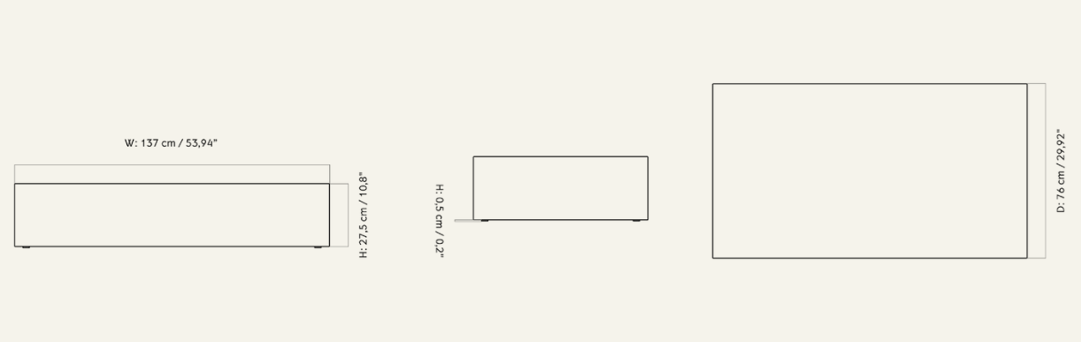 The top and sides are made of solid marble with a thickness of 18 mm, and the surfaces have been matte polished and sealed, ensuring durability and resistance to everyday use. The Plinth Grand is available in several refined stone varieties, including Kendzo, Nero Marquina, Carrara, and Kunis Breccia. This table is a synonym for timeless design and luxury in a minimalist form.