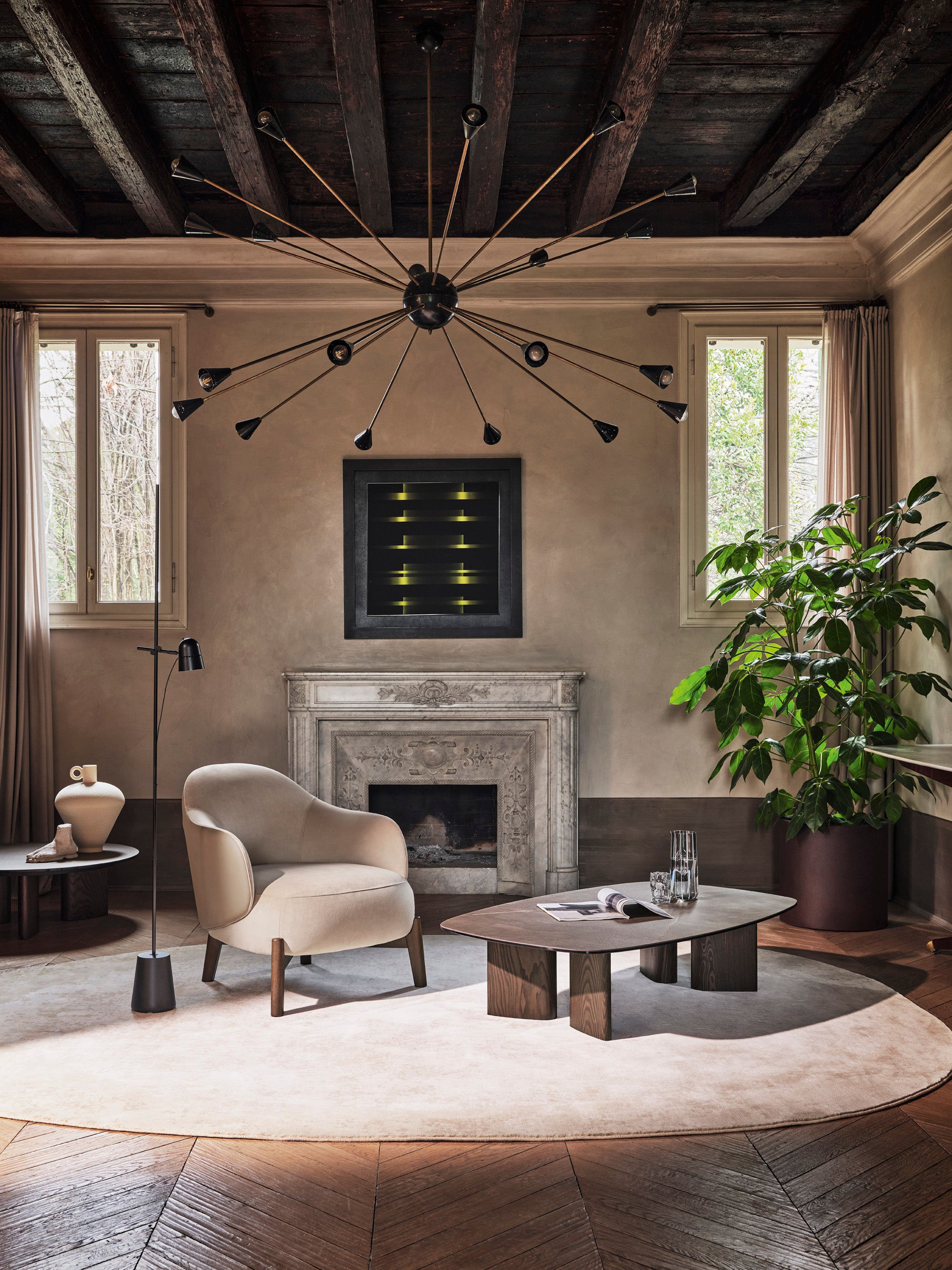 The Sandy coffee table is an elegant piece of furniture that stands out with its distinctive water droplet-shaped legs. The sloping cross-section of the leg takes on a striking, three-dimensional character. The coffee table perfectly complements modern interiors, introducing subtle elegance and a contemporary touch to the space.