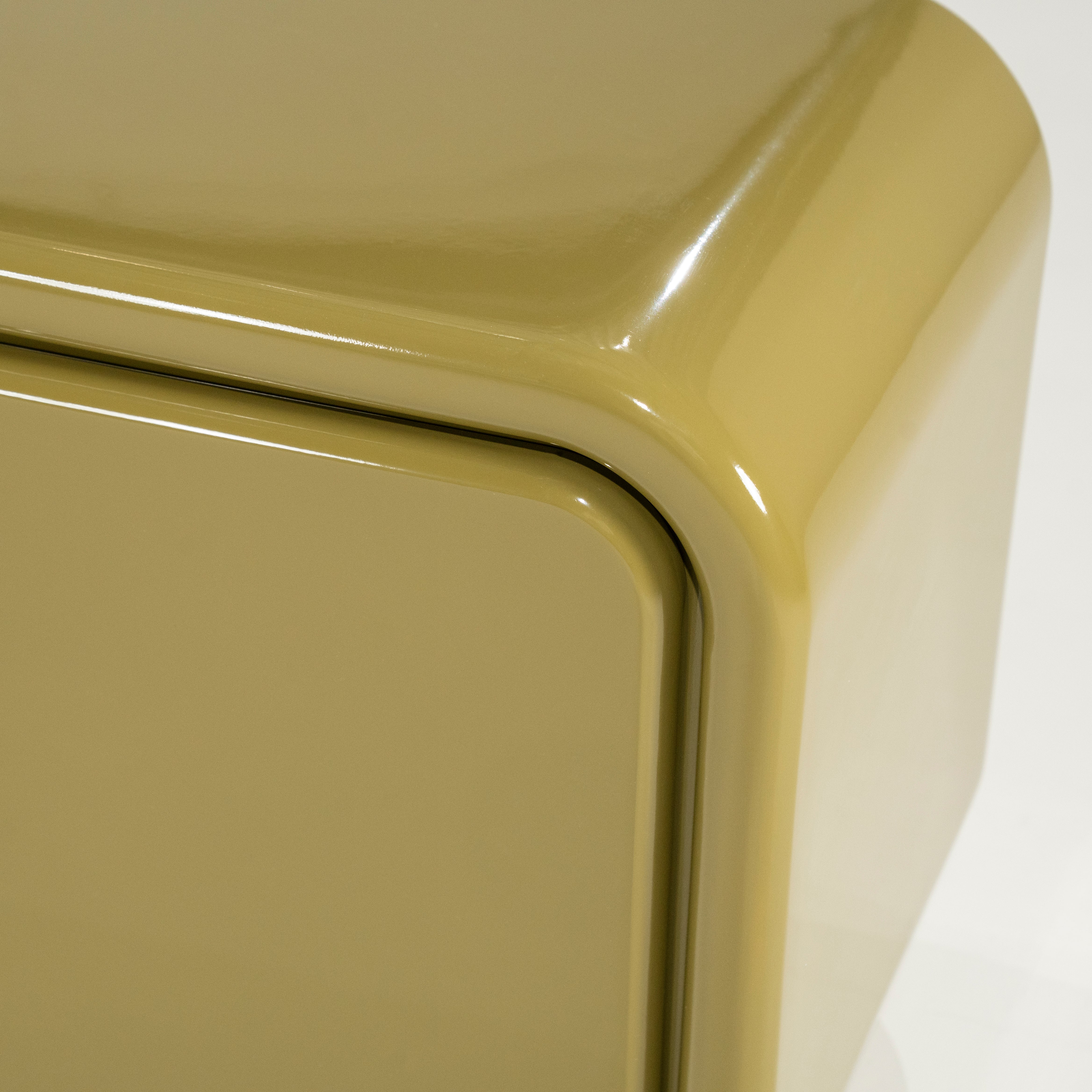 Szafka RTV Gubby to wyjątkowy mebel, który łączy nowoczesny design z subtelnym retro charakterem. Zaokrąglone krawędzie, minimalistyczne uchwyty i wysoki połysk nadają jej elegancki, futurystyczny wygląd, który przyciąga wzrok i wprowadza do wnętrza nutę stylowej lekkości. Szafka doskonale sprawdzi się w salonie jako podstawa pod telewizor lub jako element dekoracyjny, oferując jednocześnie praktyczną przestrzeń do przechowywania.