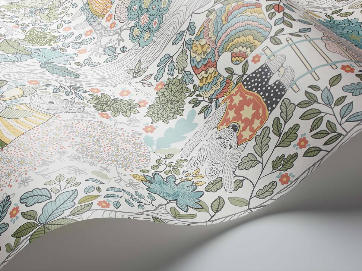 Children's wallpaper with a fairy tale forest theme CHARLIE white with green