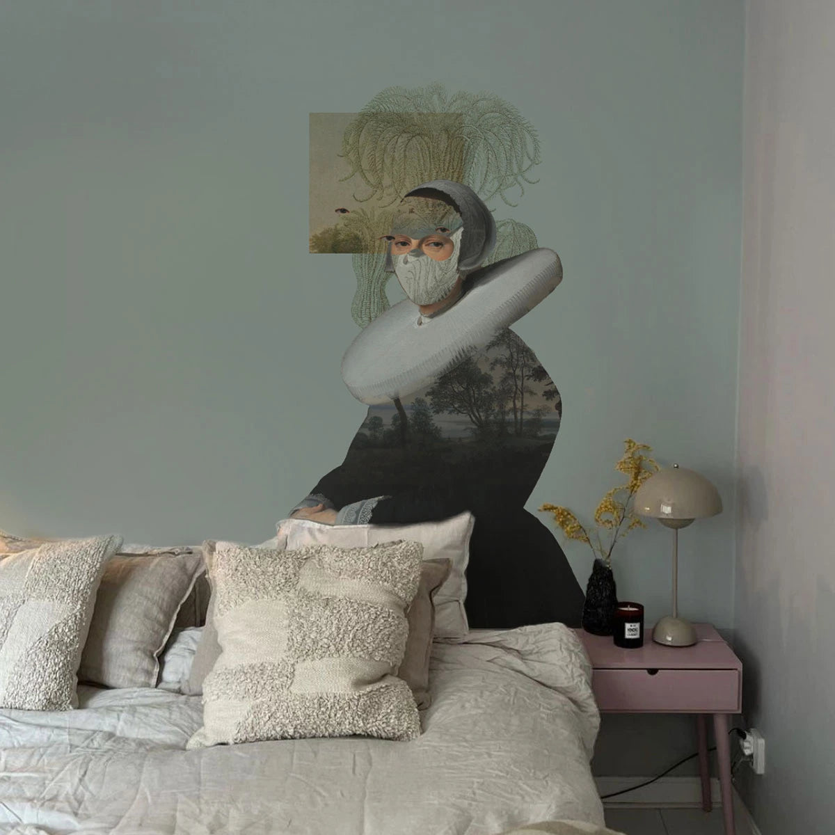 Circle-shaped mural DOTS - LANDSCAPE MUSE green