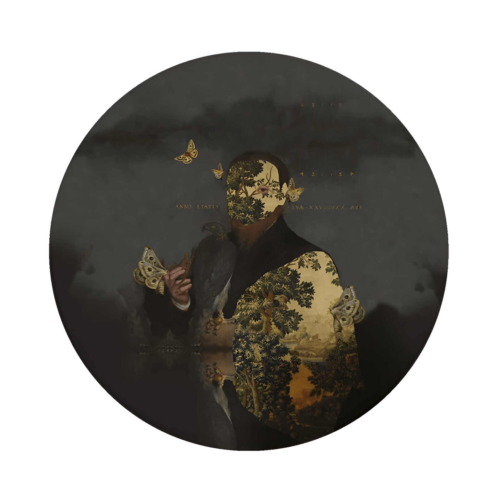 Circle-shaped mural DOTS - GENTLEMAN MOTH dark gray