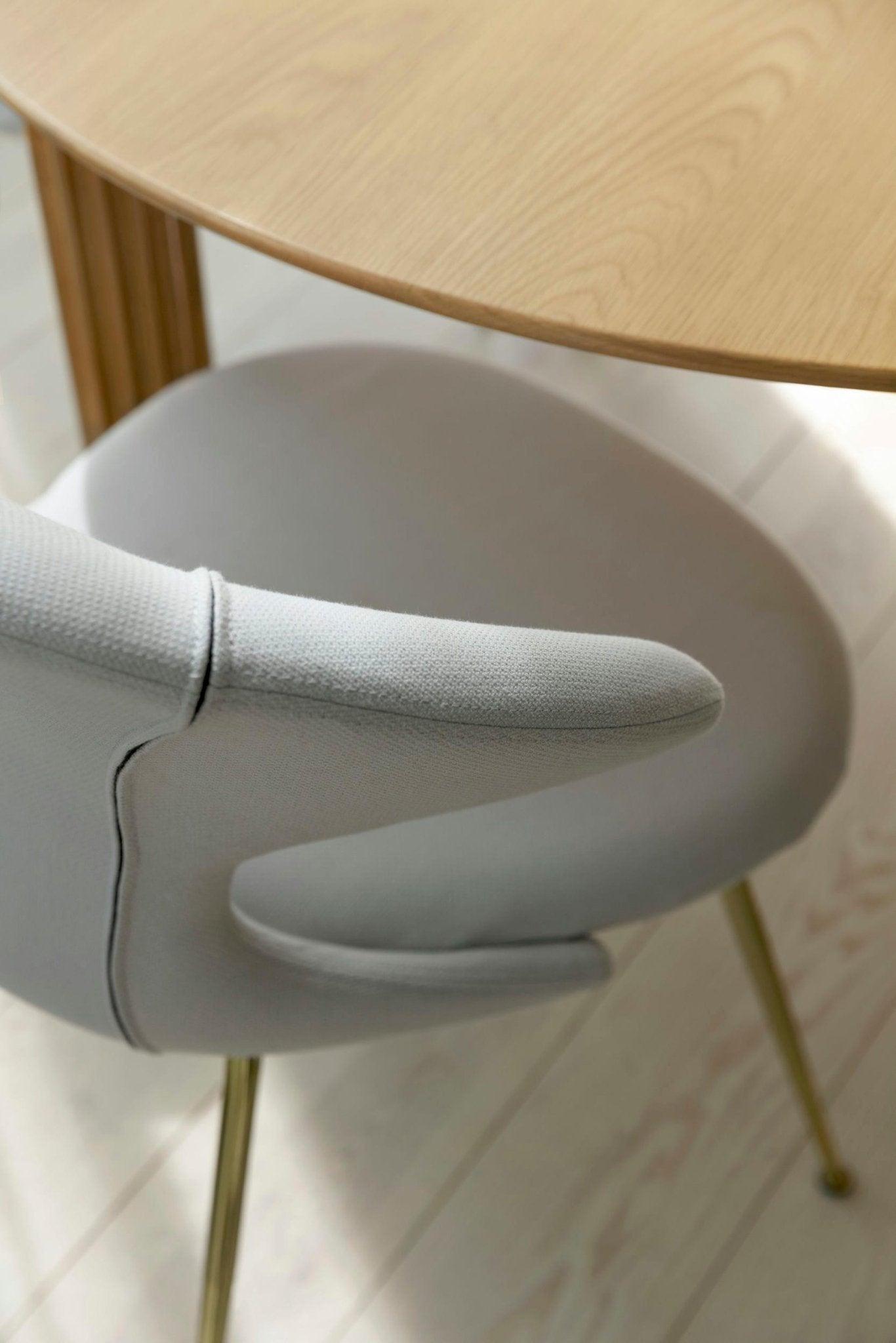 Chair It is available in 17 carefully selected colors of Horizons fabric, which is 100% recycled or in 2 fabrics from the Teddy collection. In addition, leg options include brass, chrome or black finishes, which allows you to match the chair to different interior styles. This combination of aesthetics, functionality and a balanced approach to materials makes Time Flies a unique and lasting proposition.