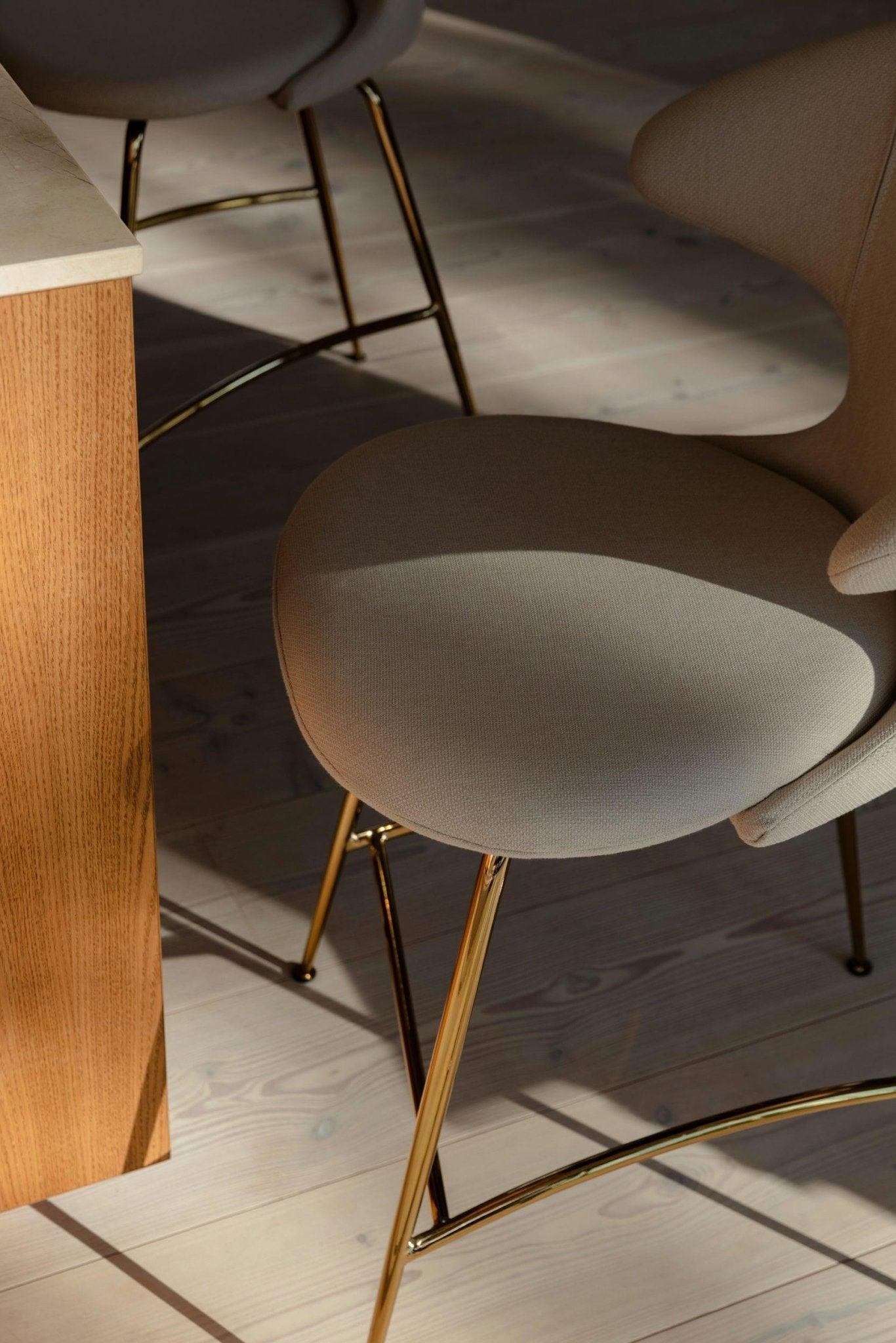 Hoker Time Flies is available with gold, silver and black legs, available in 17 carefully selected shades of Horizons fabric, fully recycled. In addition, the chair is available in two cozy variants from the Teddy Bear fabric collection: plush brown and plush white.