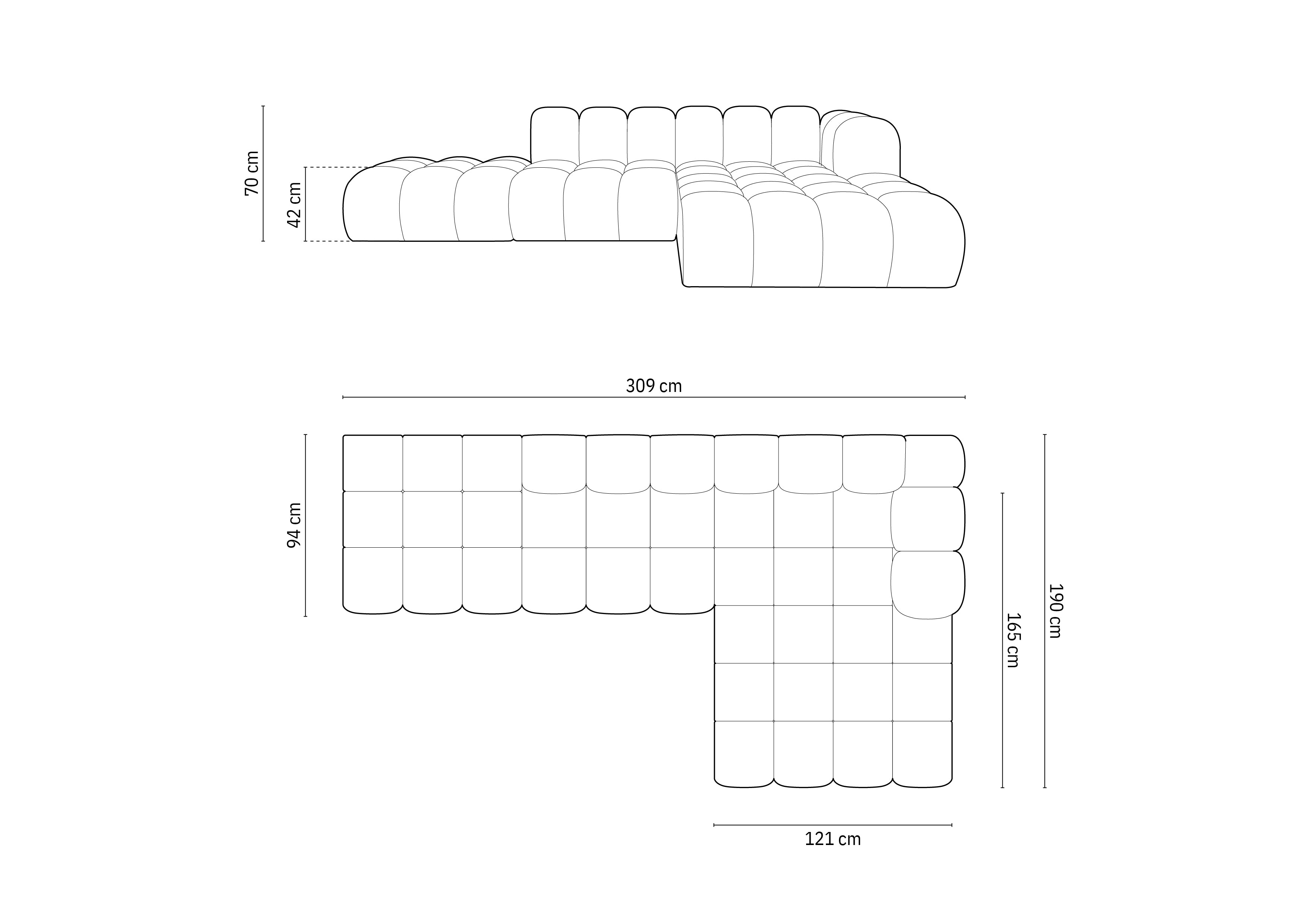 Corner Not only does it present an attractive appearance, but also exudes a cozy character. The velvet fabric, characterized by extraordinary durability and softness, gives the whole a luxurious finish. Furniture from the Limited Halley collection is an effective seating set, introducing a subtle accent of timeless elegance to the interior.