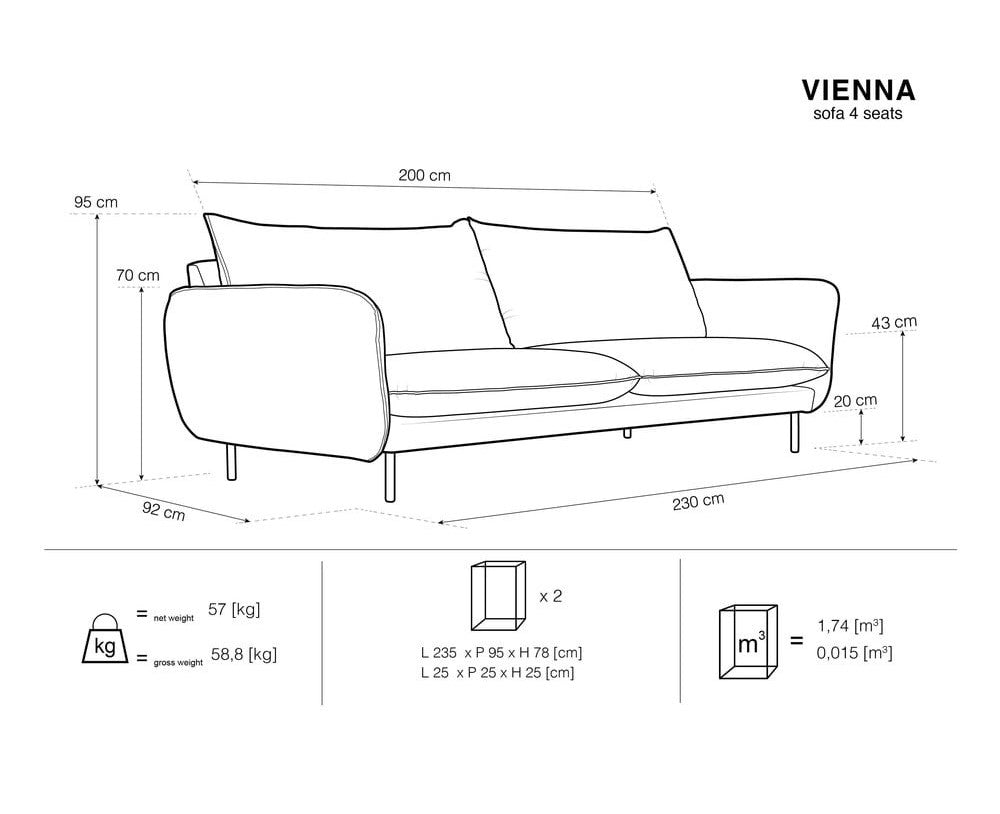 Sofa aksamitna 4-osobowa VIENNA niebieski z czarną podstawą Cosmopolitan Design    Eye on Design