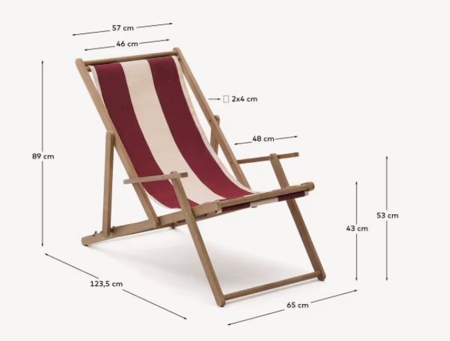 Folding garden sunbed Vilara is inspired by the iconic projects of directing chairs and deckchairs from old beach clubs on the Mediterranean coast. The combination of solid acacia structure with high quality fabric recalls the atmosphere of coastal resorts from the 1950s and the 1960s. The design impresses with elegance and functionality - the folding frame ensures easy storage, and the natural finish of the wood emphasizes its unique grain and tone. Wood comes from 100%certified FSC ™ forests, and metal elements are made of corrosion -resistant stainless steel.