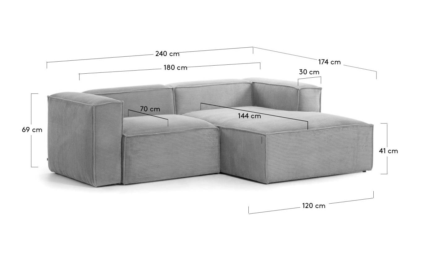 Rechtsseitiges 2-Sitzer-Sofa BLOK in grauem Cord